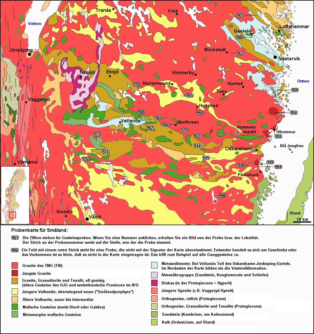 nn Sie die grauen Probenziffern in der Karte anklicken, gelangen Sie an die passende Stelle des Exkursionsberichts.