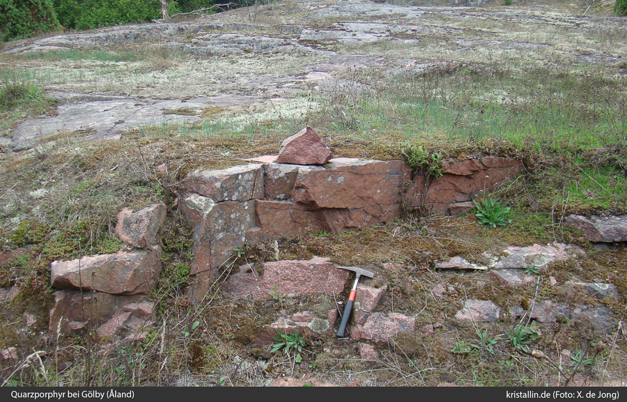 (13/14) Hier kann man viel einfacher eine Probe nehmen. Die Oberseite des Felses ist vom Eis glatt geschliffen und seit der letzten Eiszeit unverändert. Der Anschnitt entstand beim Straßenbau.