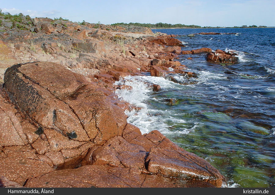 (3/100) Hammarudda bedeutet „felsige Landzunge“. Der Quarzporphyrgang ist an der Küste etwa 400 m breit und nimmt praktisch die ganze Breite der Halbinsel ein. Das Foto zeigt den Blick nach Osten.