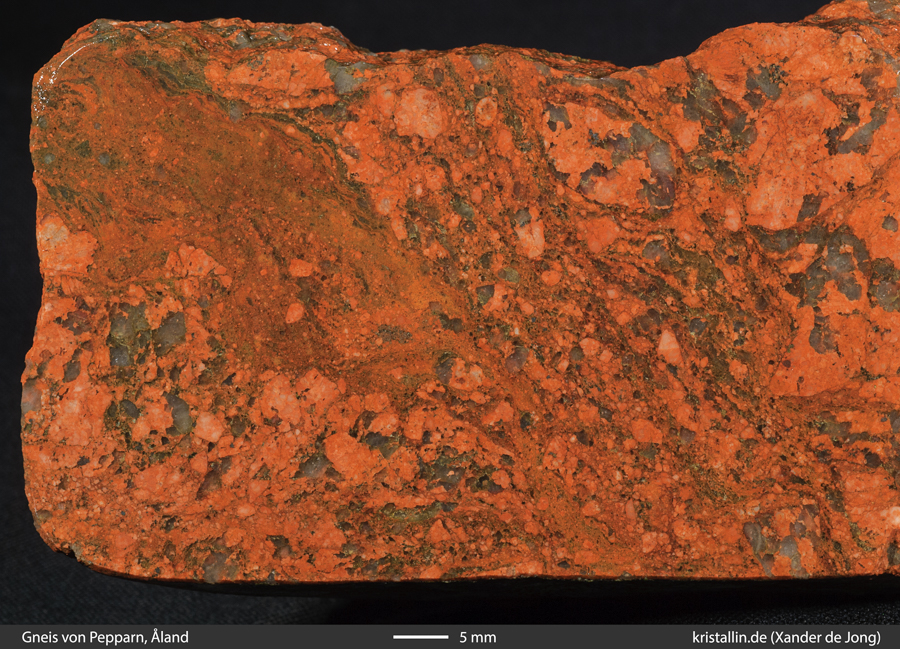 (72/100) Ebenfalls ein svekofennischer Gneis. Auch wenn er stellenweise magmatisch aussieht, so sind die Deformationen unübersehbar - daher "Gneis". Siehe nächste Seite.