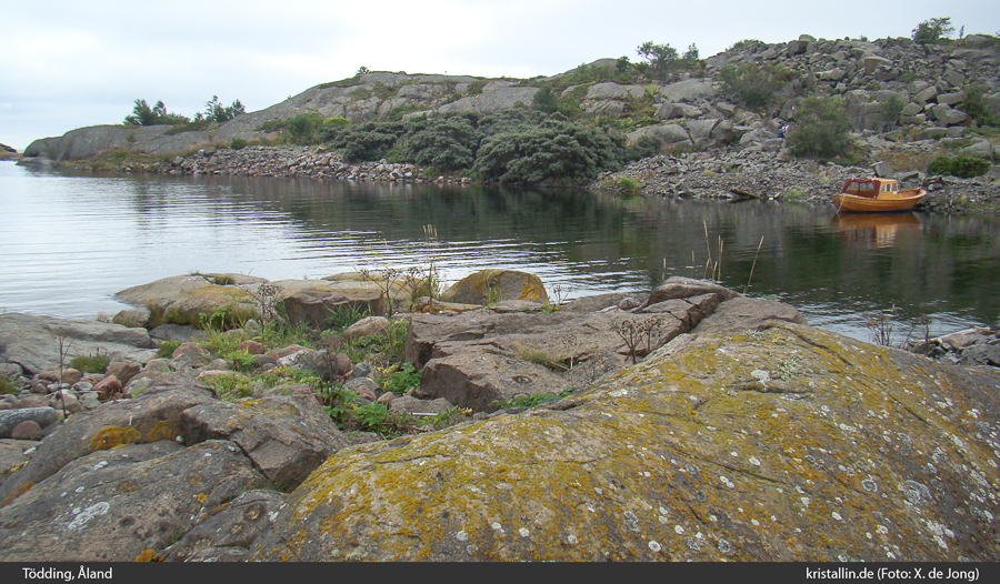 (23/99) Dagegen ist eine geschützte Bucht ideal. Außerdem enthalten Geröllstrände wie die im Hintergrund immer auch Nahgeschiebe, die uns entscheidende Informationen über die Umgebung und die Gesteine unter Wasser liefern.