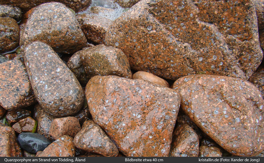 (25/99) Die vielen gleich aussehenden Strandgerölle in der Nähe belegen, dass es von diesem Porphyr hier eine ganze Menge gibt.