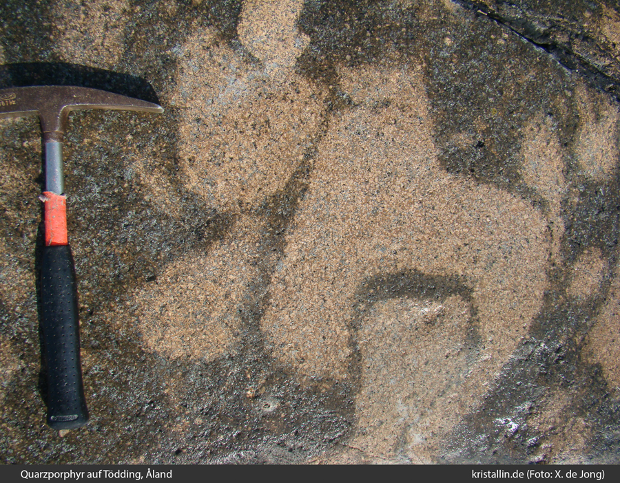 (29/99) Der dunkle Porphyr hat große Stücke der hellen Variante in sich aufgenommen.