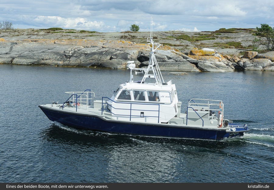 (33/99) Das ist das Boot von Mats Sjöström. Er besitzt eines der beiden Wassertaxis, die man auf Åland mieten kann. Solche Boote sind robust, haben einen flachen Unterboden und einen Wasserstrahlantrieb - also keine Schraube. So kann man auch relativ flache Gewässer befahren, ohne sich das Boot zu beschädigen.