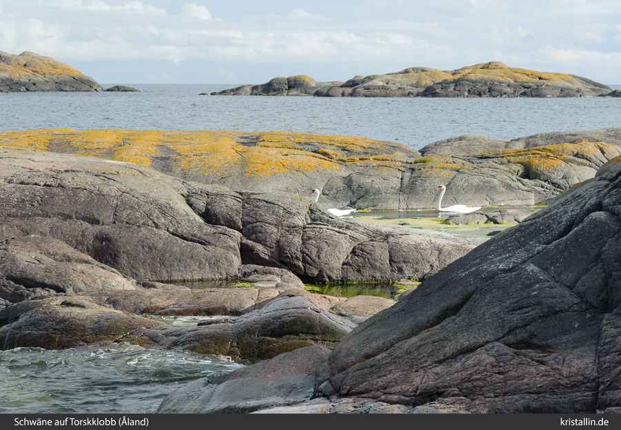 (80/99) Man glaubt kaum, dass auf so abgelegenen Felsen auch noch Schwäne unterwegs sind. Vermutlich nisten die dort irgendwo.