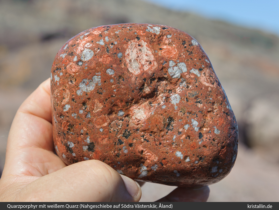 (2/26) Gleicher Typ als Geschiebe, auf der Insel Södra Västerskär gefunden. (Karte) Bei der Beurteilung der Quarzfarbe muss man genau hinsehen. Siehe dazu das folgende Bild.