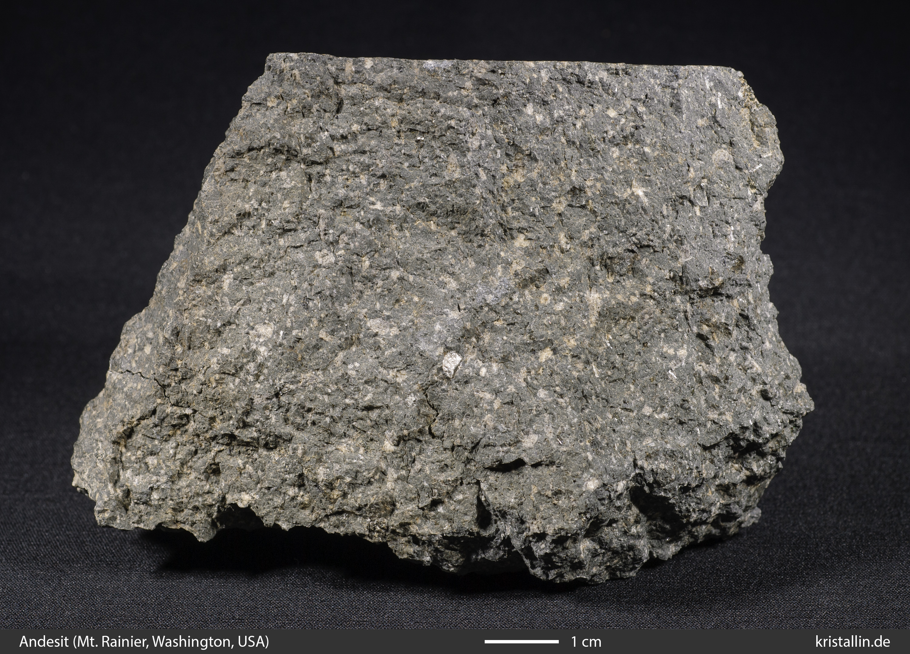 Neben viel Plagioklas können Andesite bis zu 10 % Foide oder bis zu 20 % Quarz enthalten. Beide stecken unsichtbar in der Grundmasse. Ein Andesitmagma, das sich in der Tiefe langsam abkühlt, wird zu Diorit.