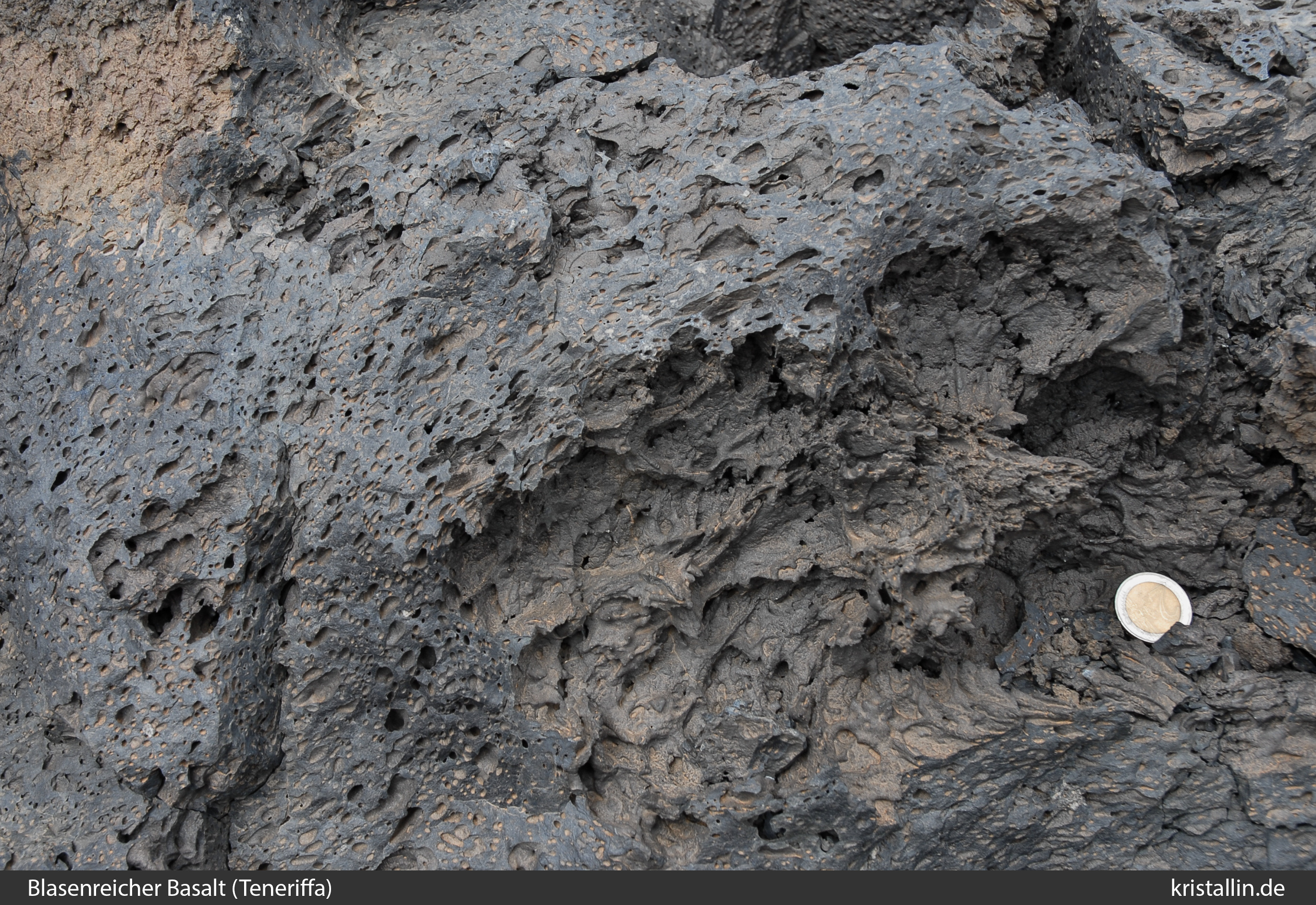 Die Bildung kleiner Blasenhohlräume ist nur in dünnflüssigen Laven möglich. Solche Blasen im Gestein sind ein Indiz für einen Basalt, wenn die Grundmasse feinkörnig und dunkel ist.