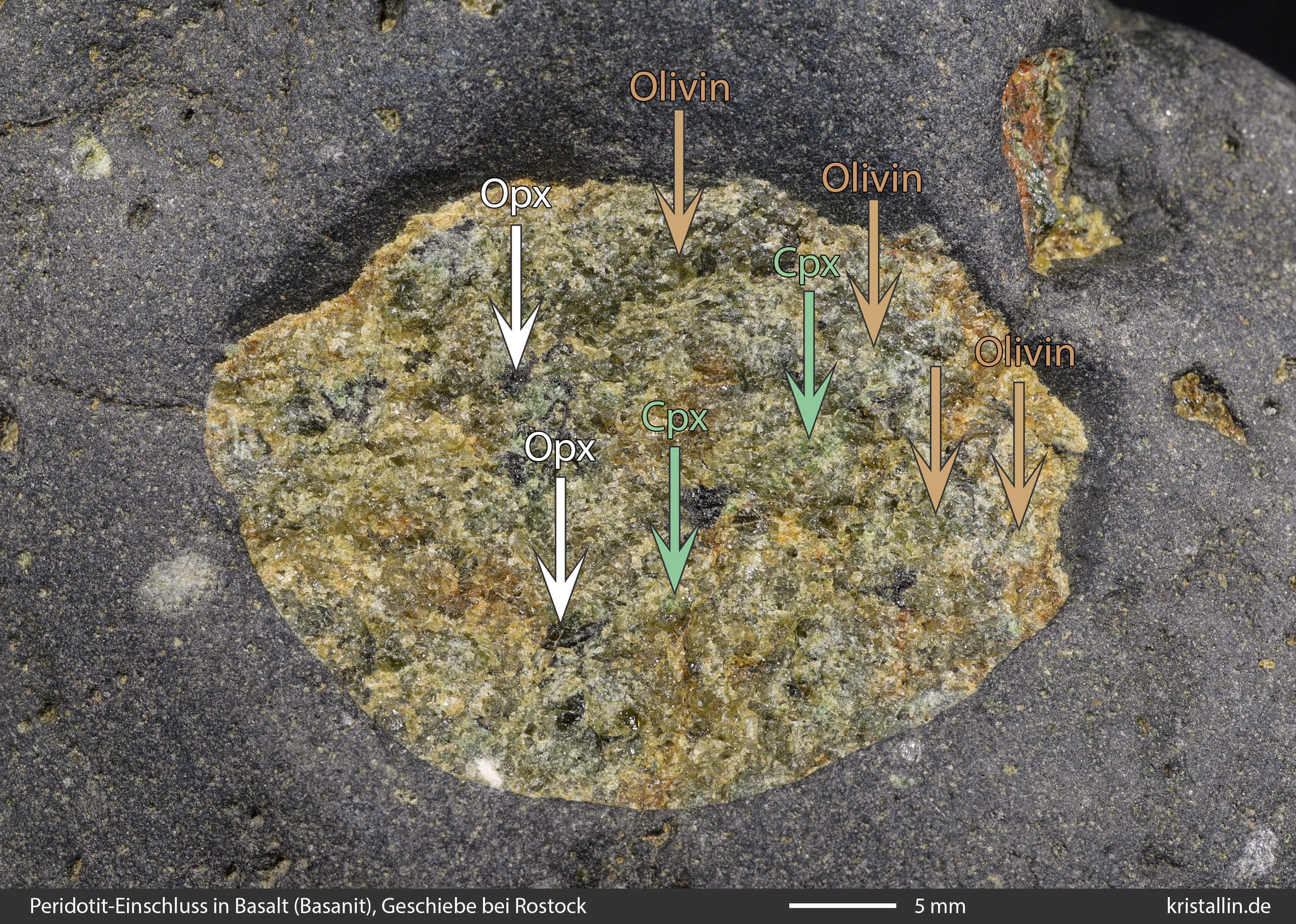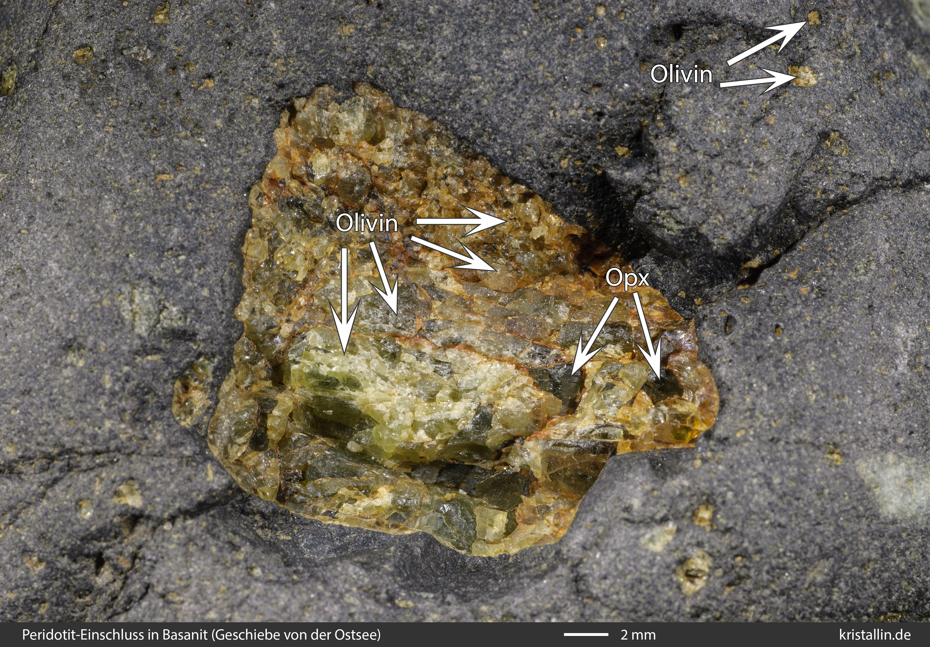 - Peridotit-Einschlüsse kommen vor allem in alkalireichen Basalten und in Basaniten vor.