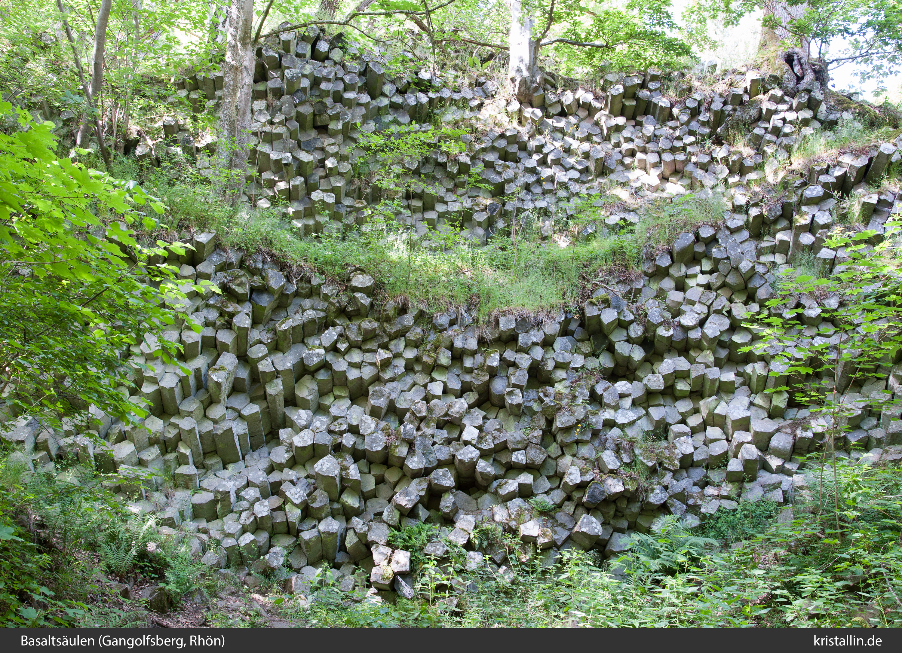 Auch am Gangolfsberg in Hessen gibt es ausgesprochen schöne Säulen. Sie wurden bei der Hebung der Mittelgebirge schräg gestellt und lassen keinen Rückschluss auf die Richtung der Abkühlung zu.