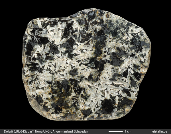 Der Åsby-Diabas kommt aus Dalarna, ungefähr bei 61.64816, 12.97228 (Sammlung Kottner)