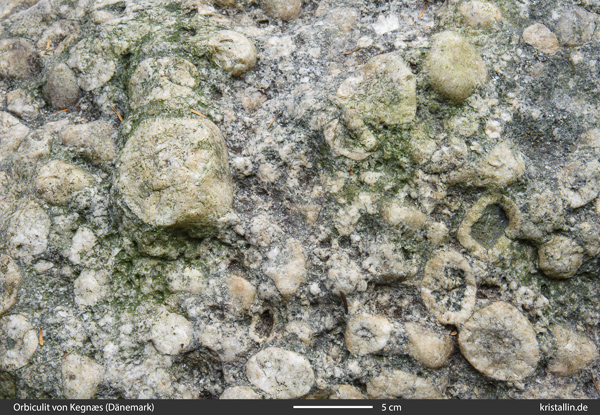 Das Besondere am Kegnæs-Orbiculit sind einerseits die unterschiedlich großen Orbicule und andererseits ihre große Anzahl. Allein auf der Oberseite des Findlings findet man mehr als 350 der rundlichen Gebilde.
