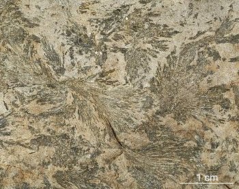 Der Amphibol Gedrit neigt zu faseriger und büscheliger Kristallbildung.