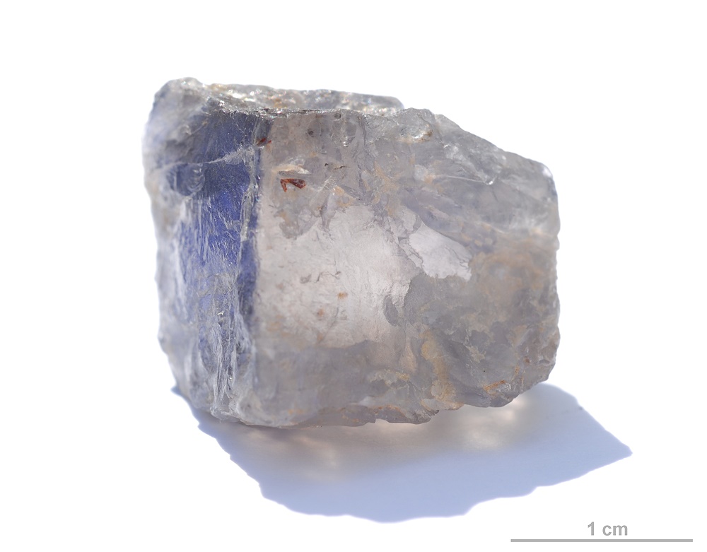 hellblaue Färbung zu sehen. Der Kristall liegt jetzt auf der Fläche, die