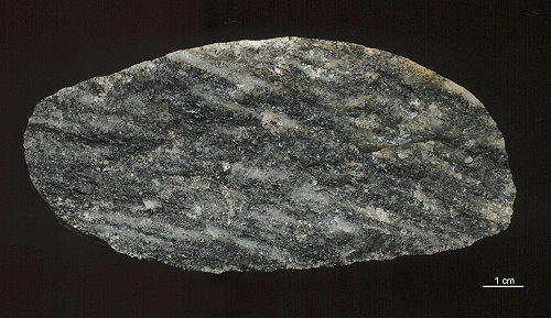 In manchen Gneisen sind die Minerale in flache Ebenen