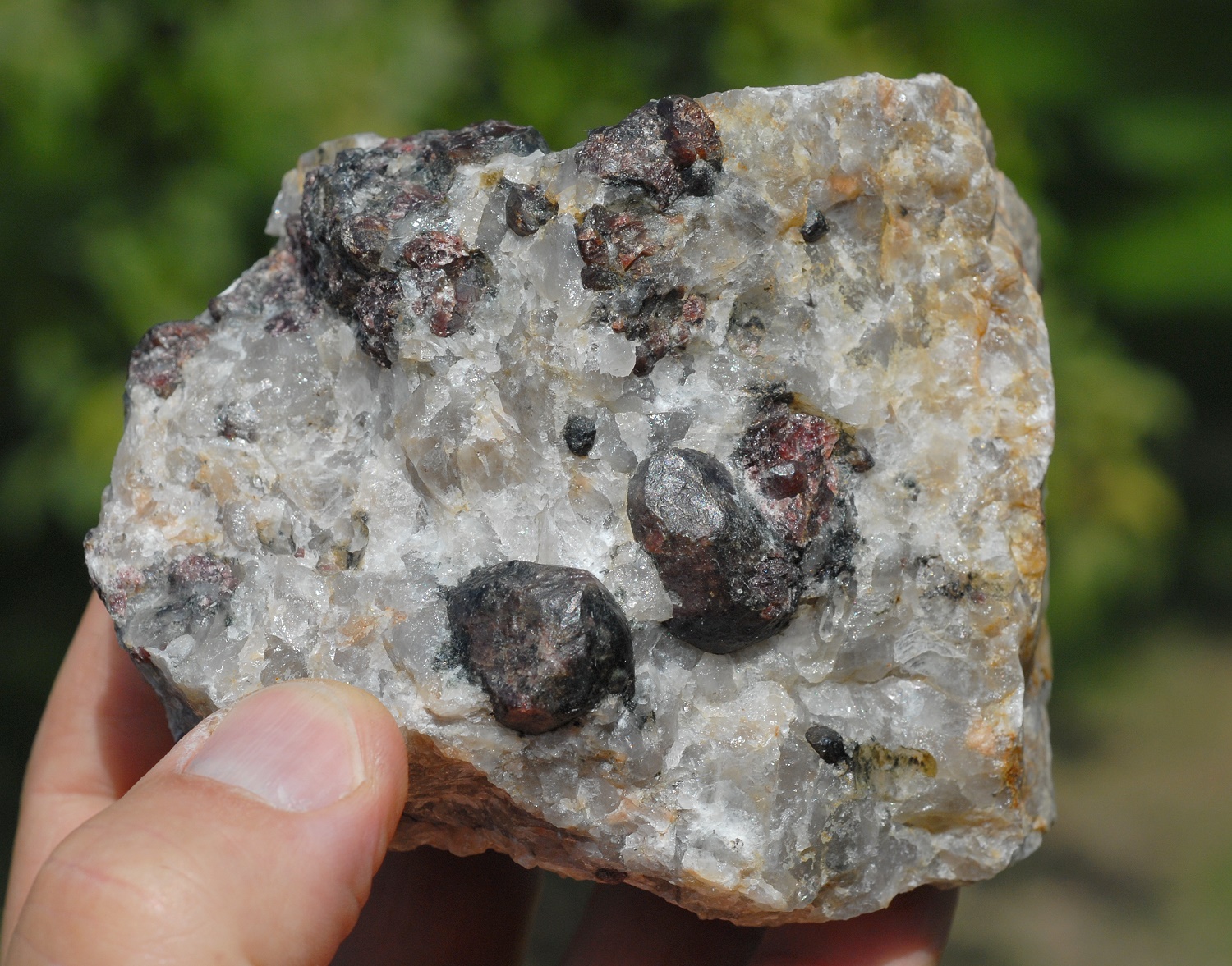 In diesem Gestein sind die Granate ziemlich vereinzelt, mit Sicherheit