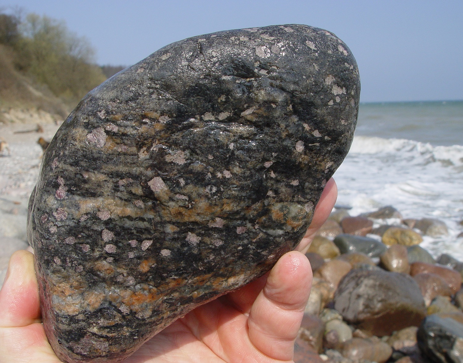 Granatführender Gneis aus dem Geschiebe an der Ostsee bei Travemünde