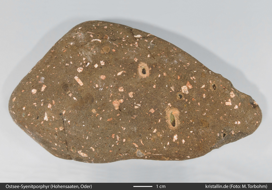 (1/30) Ostsee-Syenitporphyre gibt es nur als Geschiebe. Die meisten sind braun bis braungrau und unauffällig.