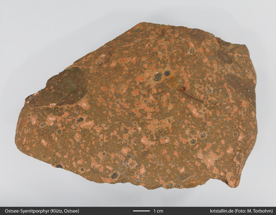 (7/30) In vielen Ostsee-Syenitporphyren stecken feinkörnige Gesteinsfragmente (Xenolithe).