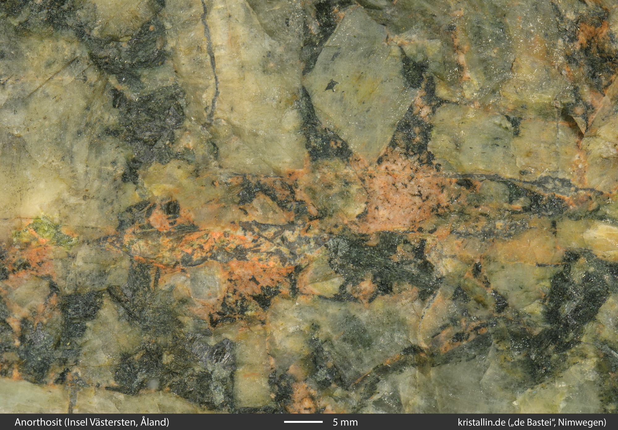 In der Sammlung des Naturmuseums in Nimwegen (Niederlande) gibt es ein auffälliges Handstück von der Insel Västersten. Västersten liegt im Südwesten von Åland und ist das zweite Anorthositvorkommen dort.