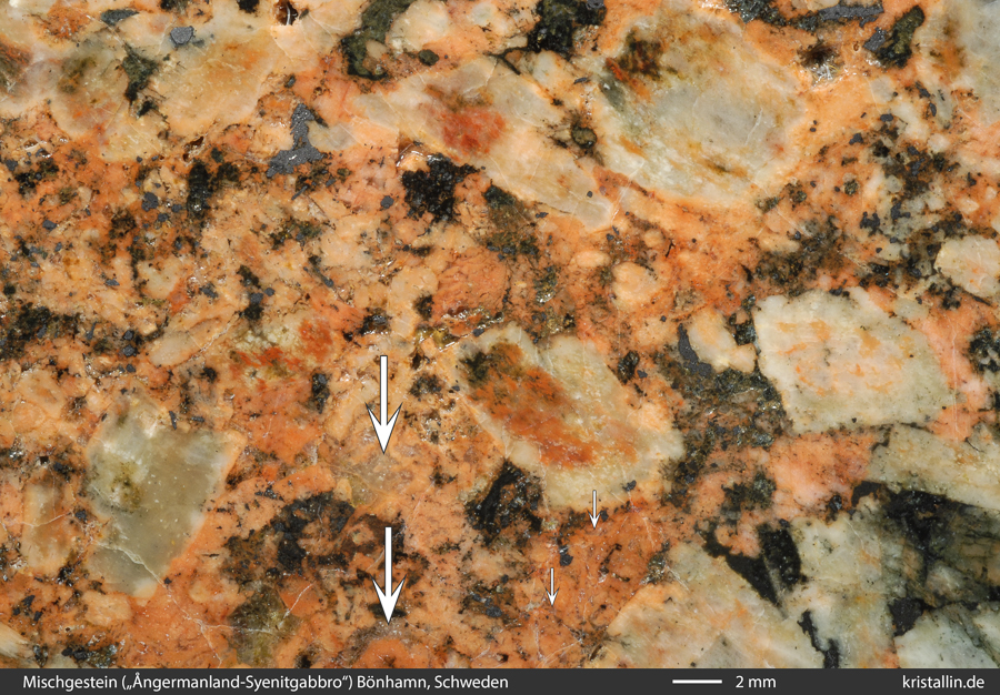 (5/27) Nahaufnahme des unteren Teils. Die großen Pfeile zeigen auf große Quarze, die kleinen auf kleine.