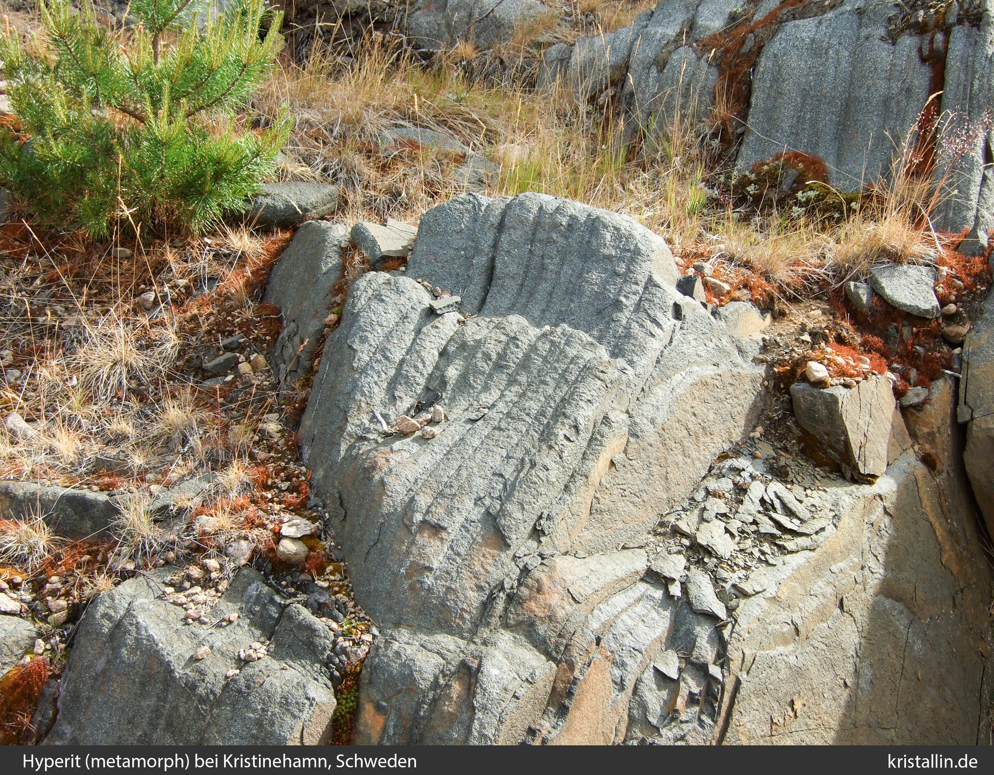 Einige Hyperite sind grobkörnig mit zentimetergroßen Plagioklasen. So ein Hyperit wurde früher unter anderem bei Romperöd in Småland abgebaut. Das Gelände steht heute unter Schutz, aber die Halde des alten Steinbruchs ist noch zugänglich.