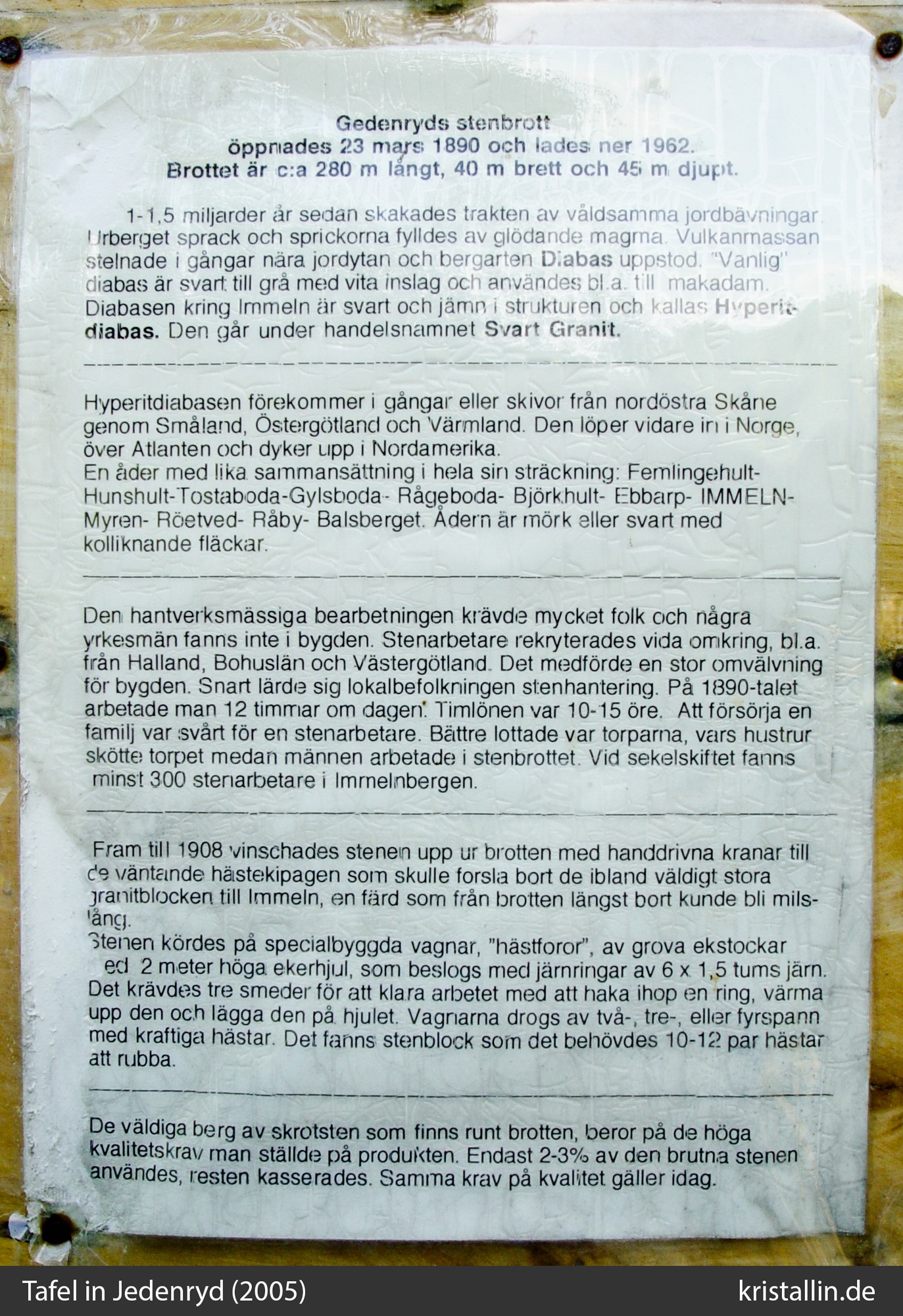 Am Steinbruch in Immeln gab es 2007 mehrere Informationstafeln. Elke Figaj hat zwei davon aus dem Schwedischen übersetzt. Zuerst die Tafel aus Bild 21: