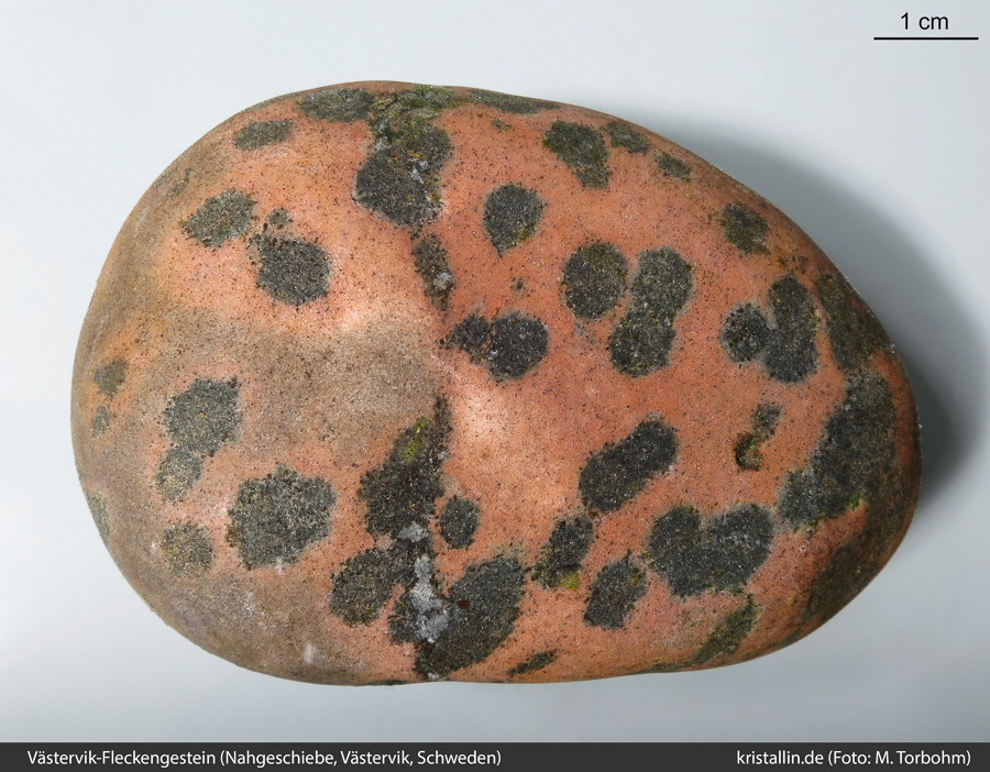 (19/55) Geschiebe mit breiten orangefarbenen Saumzonen, die sich „wolkig“ in der graubraunen Grundmasse verlieren (Lokalität 7).