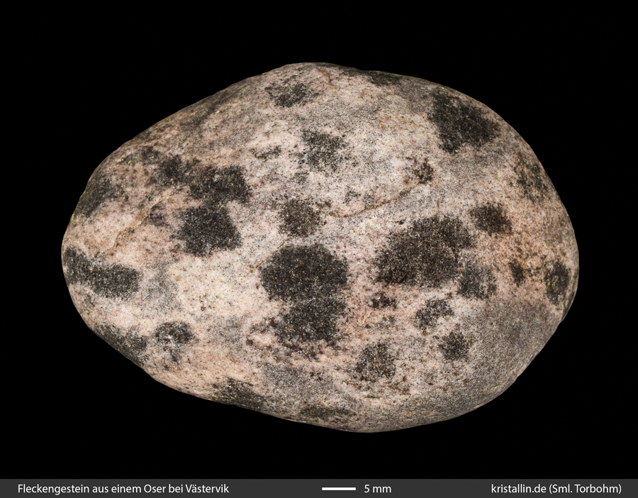 (20/55) Geschiebe mit roségrauer Grundmasse und unregelmäßig begrenzten Flecken (Lokalität 8).