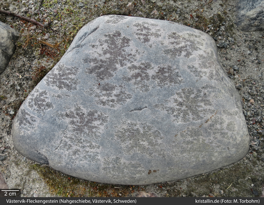 (23/55) Ausgefallene Variante mit diffus sternförmigen Flecken und weißen Säumen in einer grauen Grundmasse.