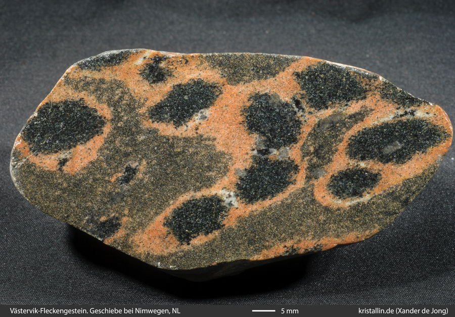 (49/55) Västervik-Fleckengestein mit grünlich-grauer Grundmasse.