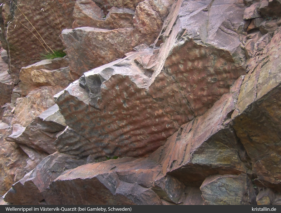 Solche Wellenrippel entstehen im flachen Wasser. Sie sind wegen ihres hohen Alters von 1,9 Milliarden Jahren ein bemerkenswertes geologisches Zeugnis.