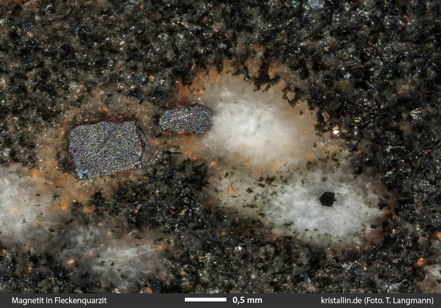 (4/34) Makroaufnahme der Schnittfläche. Das graue Mineral ist Magnetit.