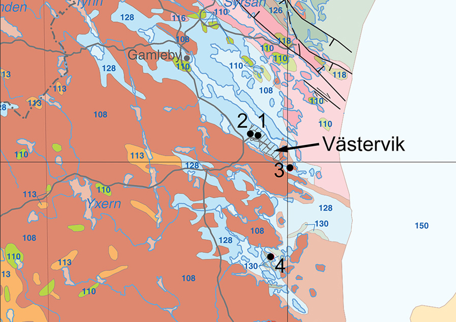 (9/34) Geologische Übersichtskarte des Västervik-Gebietes. Quelle: SGU (Details siehe Text.)