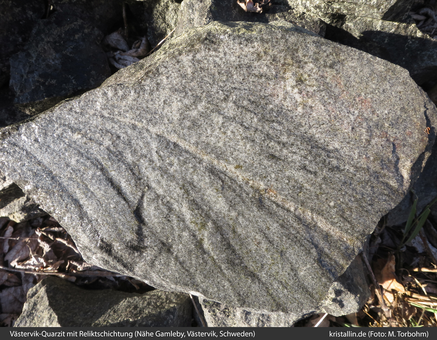 (9/26) Die dunklen Streifen sind Sedimentstrukturen, also ehemalige Schichten im Sand - von vor 1,9 Milliarden Jahren!