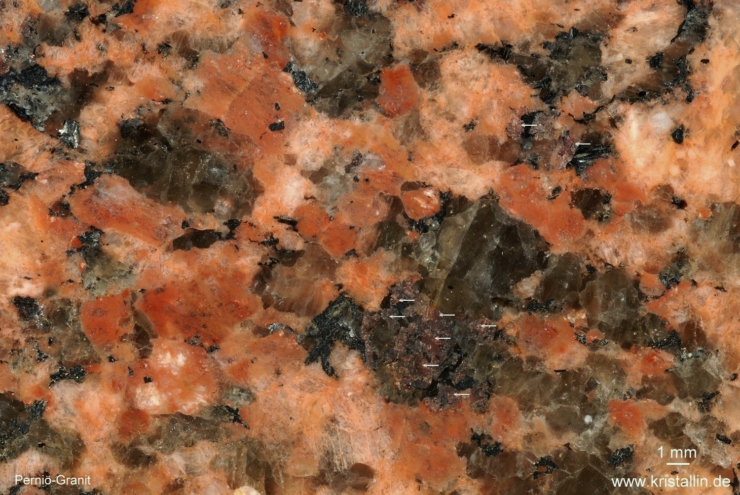 Perniö-Granit führt Granat. Dies ist ein wichtiges Erkennungsmerkmal.