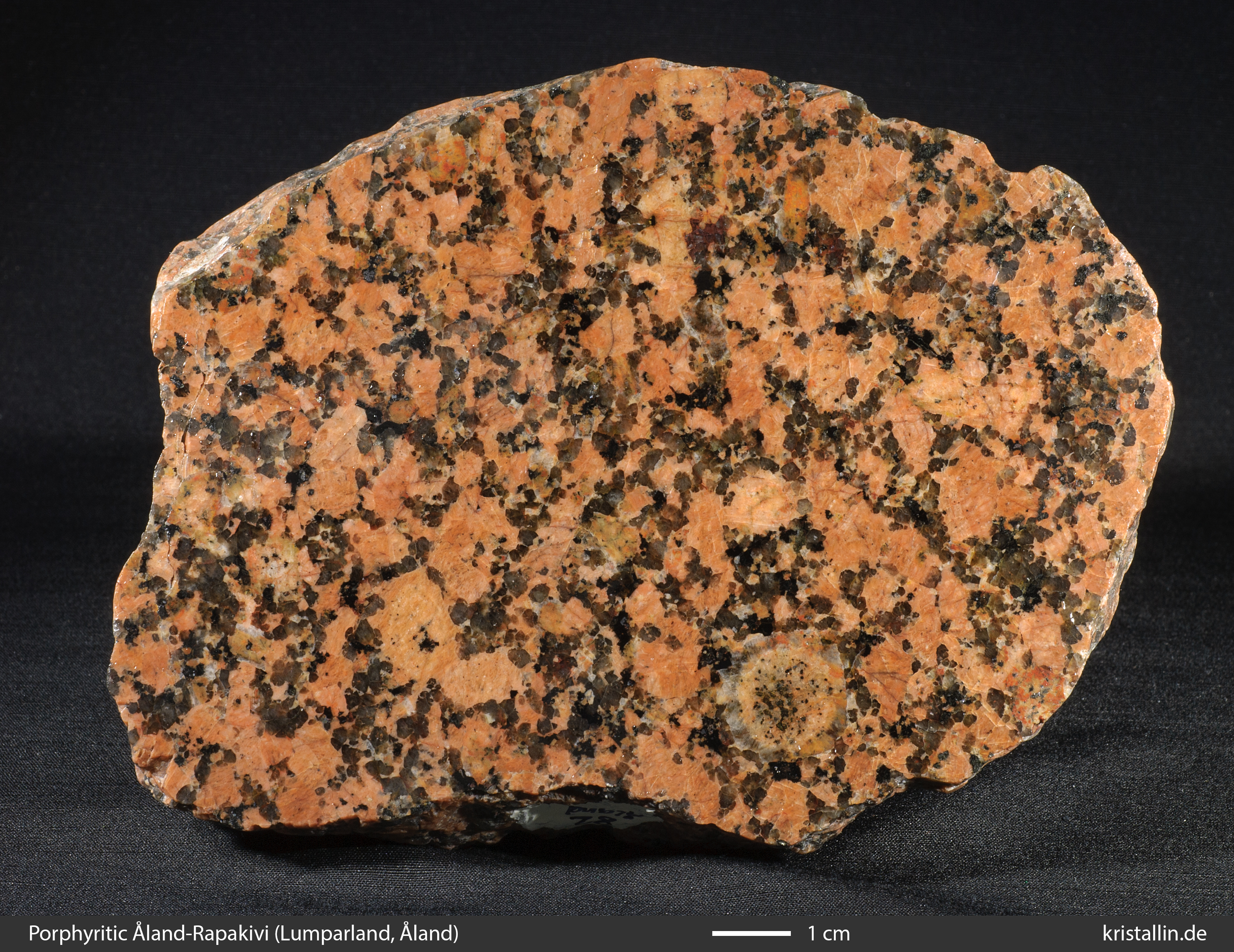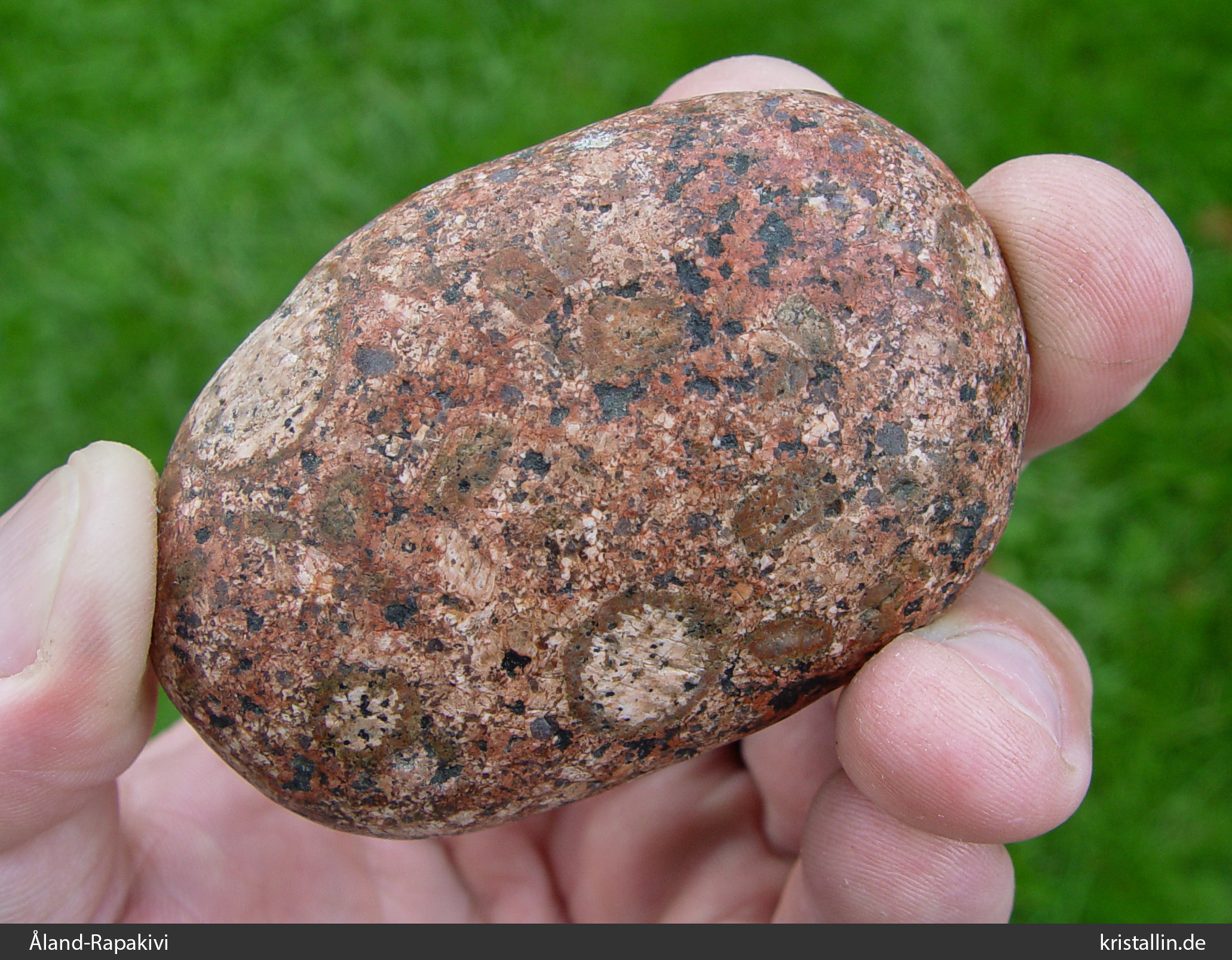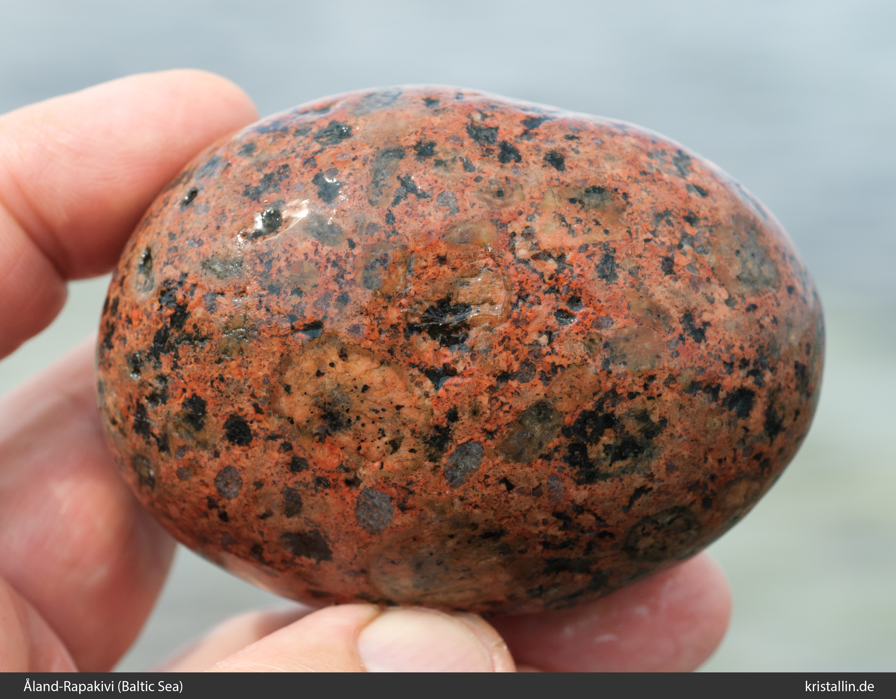 The same applies to the "Kökarsfjärden rapakivis", which also come from Åland, but from an independent deposit that lies under water west of the island of Kökar. These rocks are so coarse-grained that even amateurs notice them. They can be seen in boulder gardens and exhibitions, where they are often labelled as "porphyritic granite".
