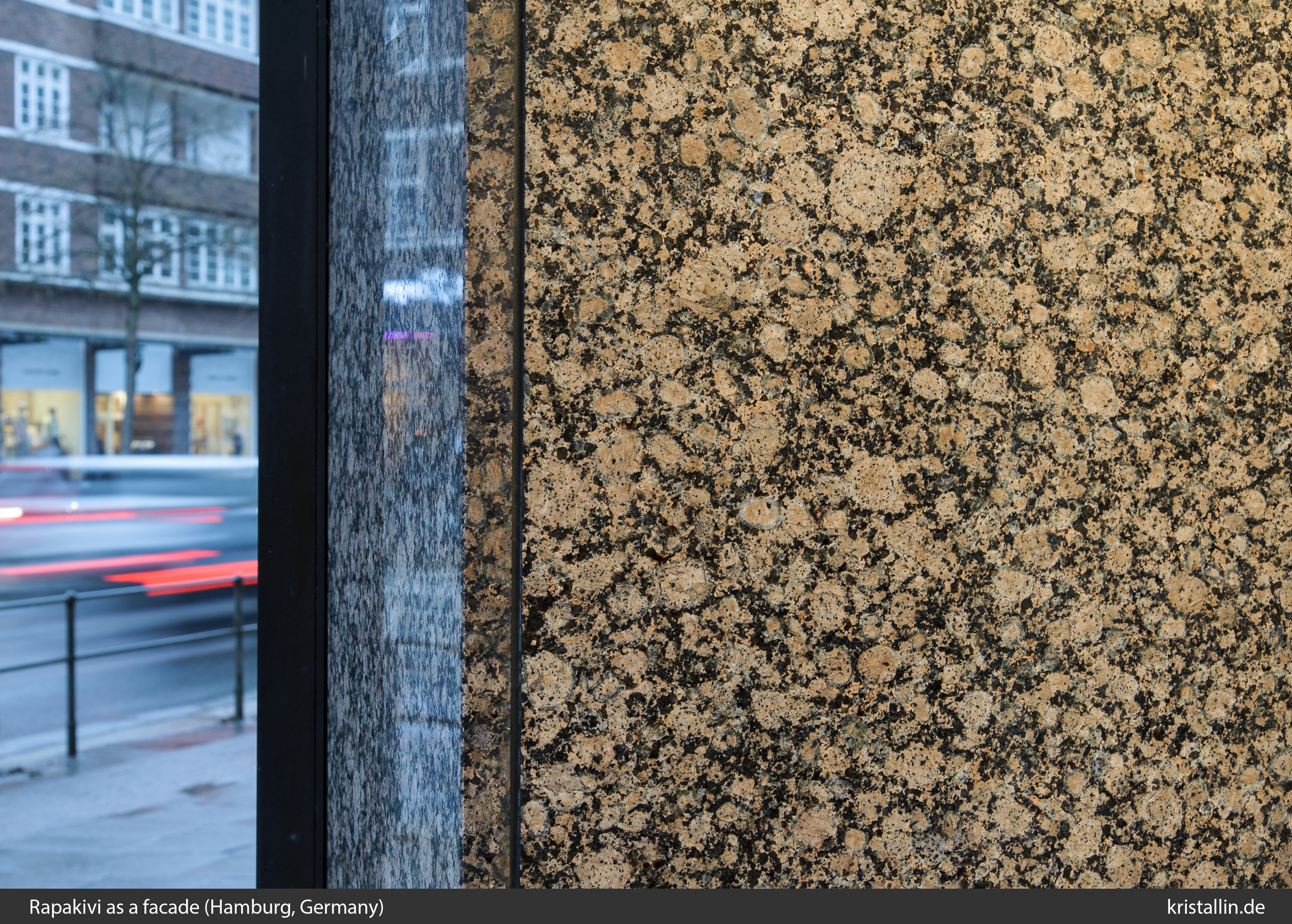 Rapakivis can also be found in the city - mainly as facade cladding or floor tiles. Often it is the "Baltic Brown" variety, which is mined in southeastern Finland.