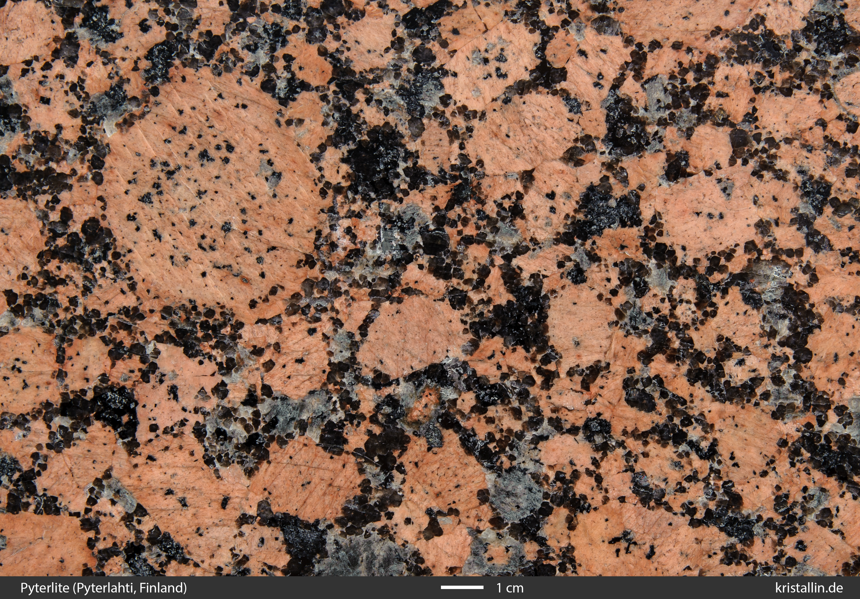 In the second group, most round feldspars lack the rim of plagioclase. They are called "pyterlite", derived from the town of Pyterlahti in Finland.