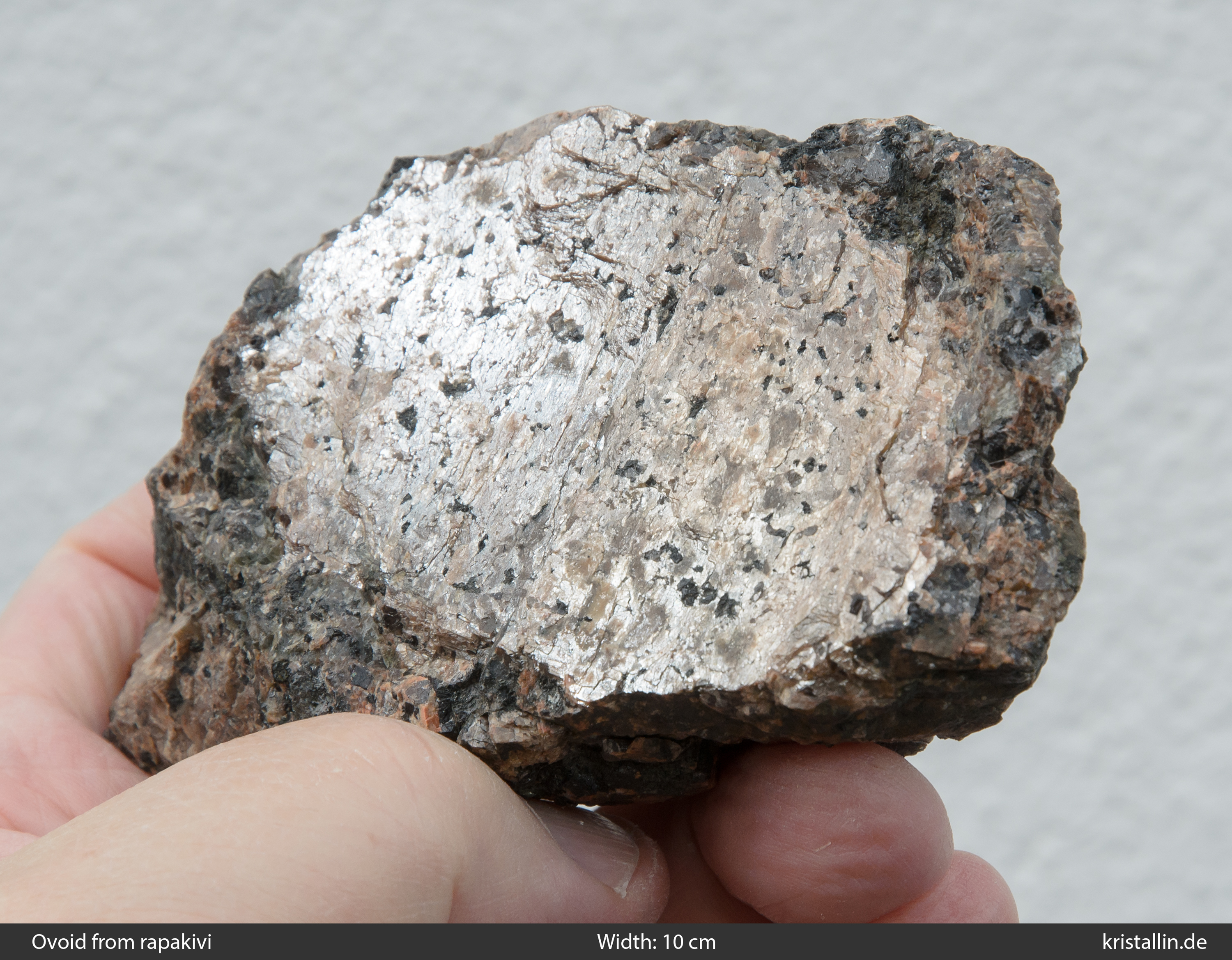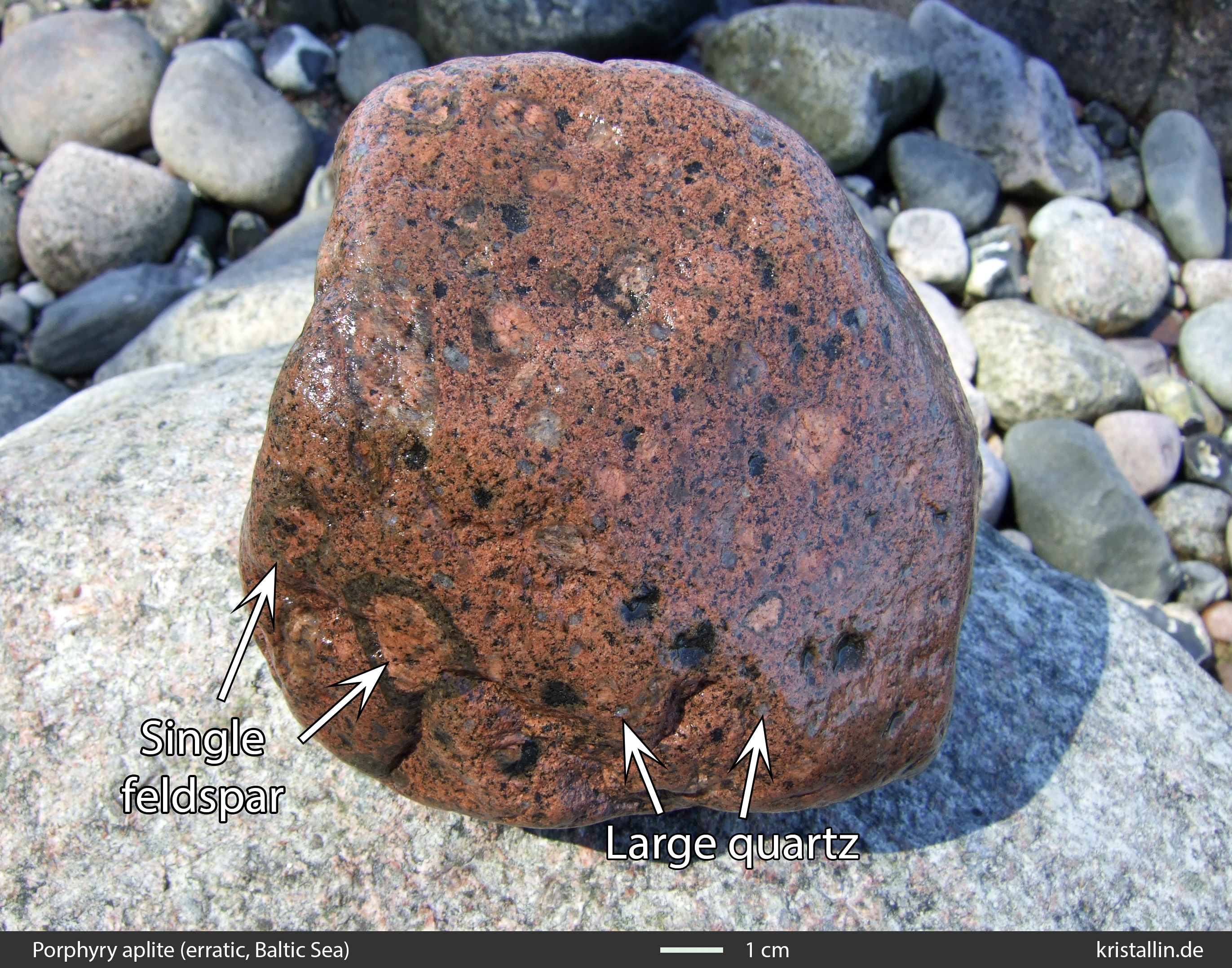 You have to find these two types of quartz in the stone to recognise a rapakivi. Because the small quartz are really tiny, you need a 10x magnifying glass.