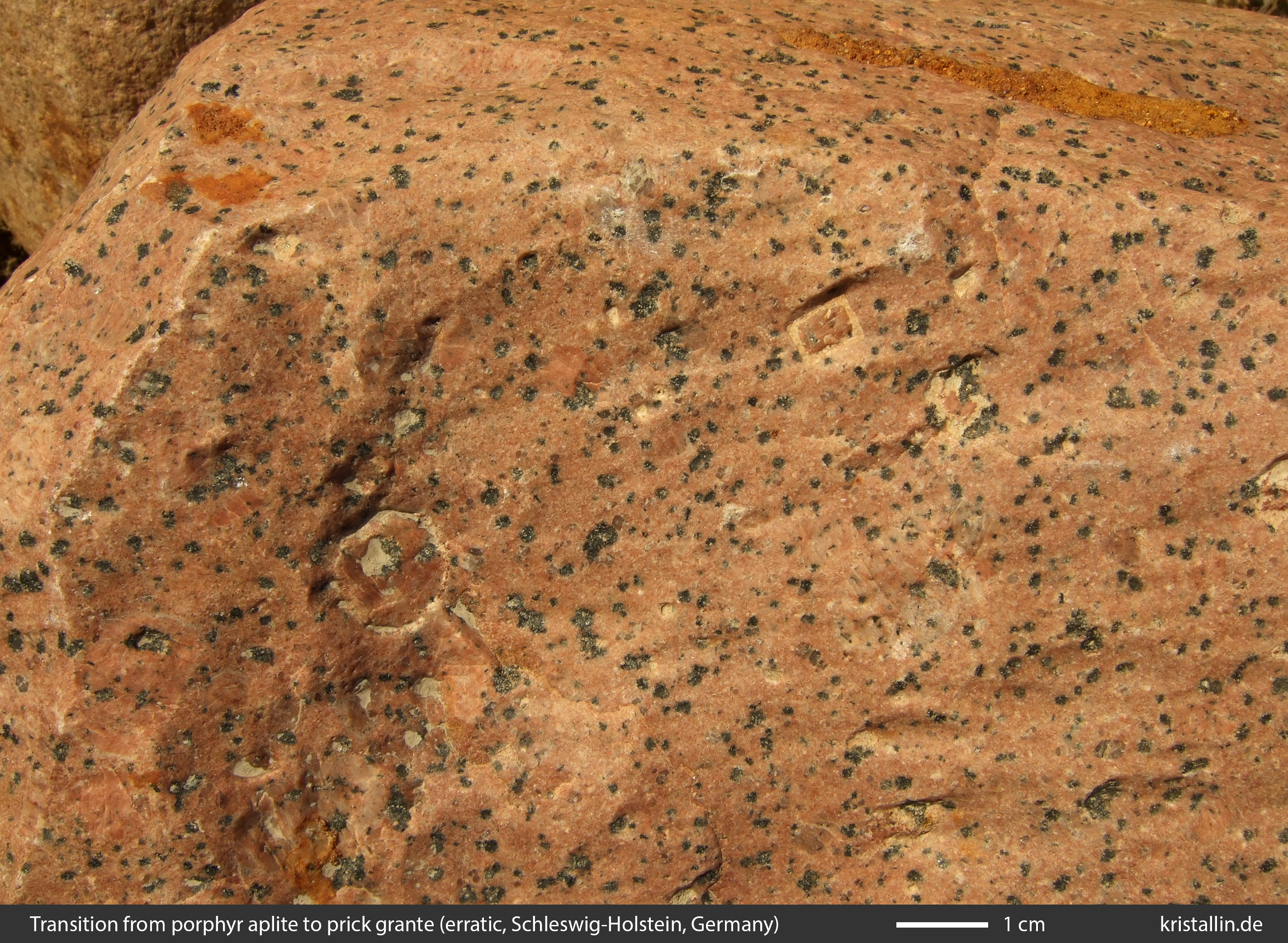 There is no boundary between porphyritic and even-grained rapakivis, but a lot of mixed forms - also with wiborgites and pyterlites. Transitions from one to the other texture are common in all Scandinavian rapakiwi plutons.