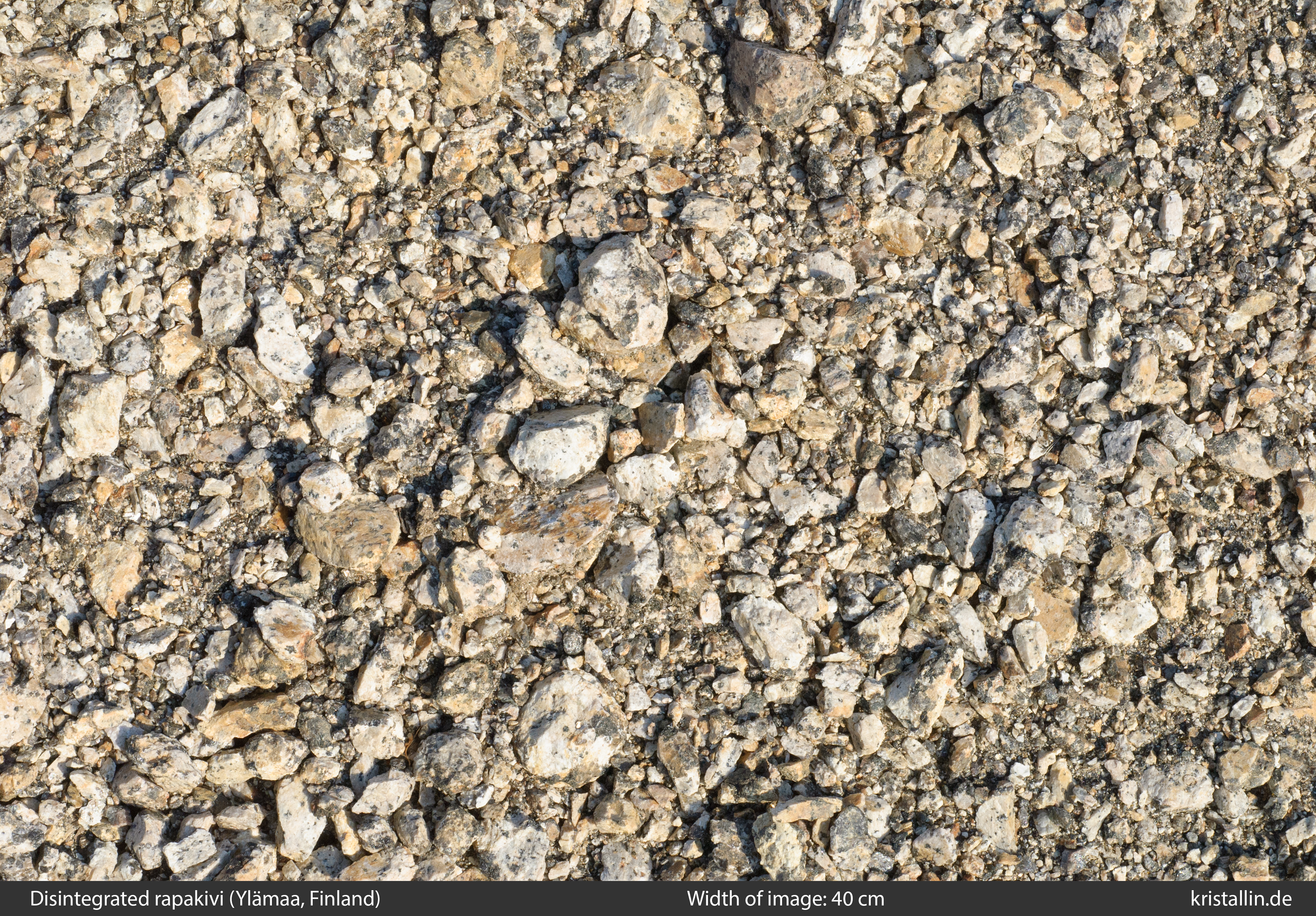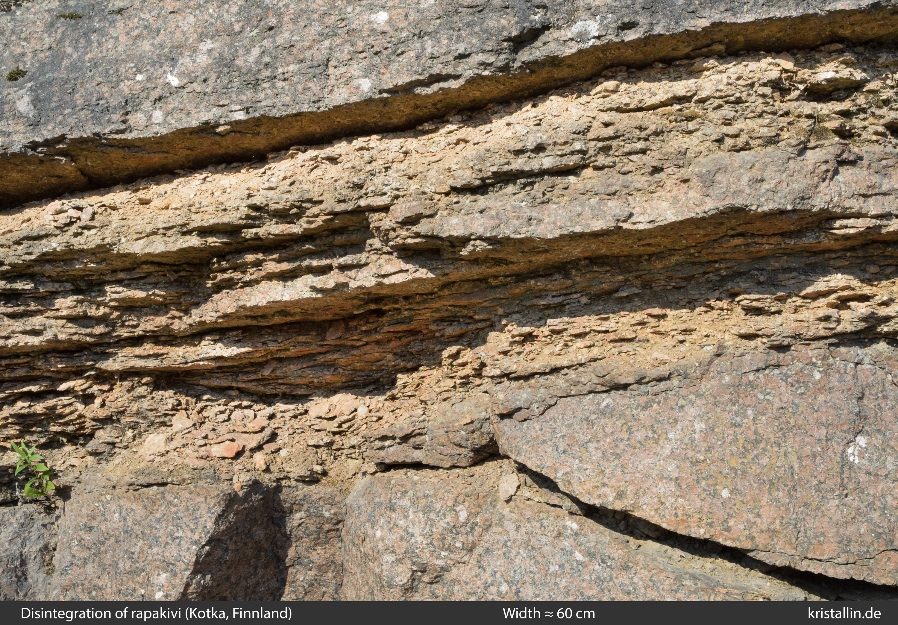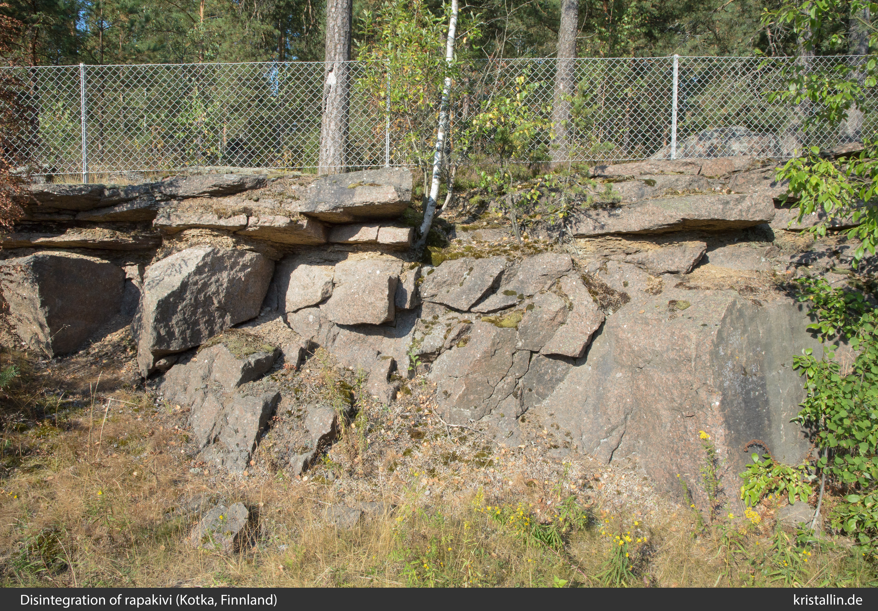 "Rapa kivi" can be translated as "decomposed, crumbled stone". However, the decomposition of these granites is special and not normal weathering. Decomposition only occurs locally and is not a general characteristic of these rocks. Rapakivis are therefore named after a phenomenon that is only found once in a while.