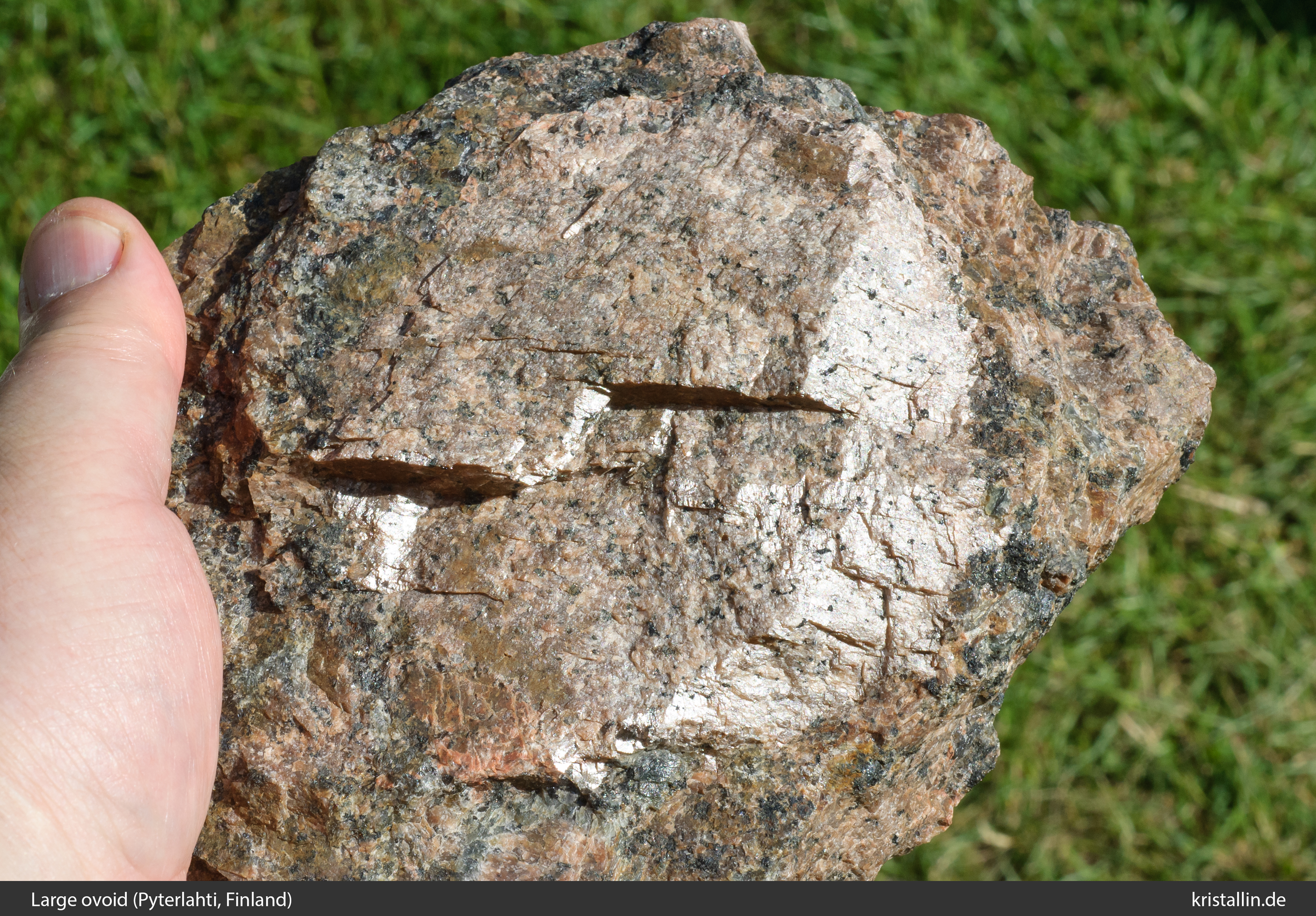 How the round feldspars (ovoids) were formed was a mystery for a long time. Today we know that the feldspars were melted on the outside and rounded in the process. (See section 13.)