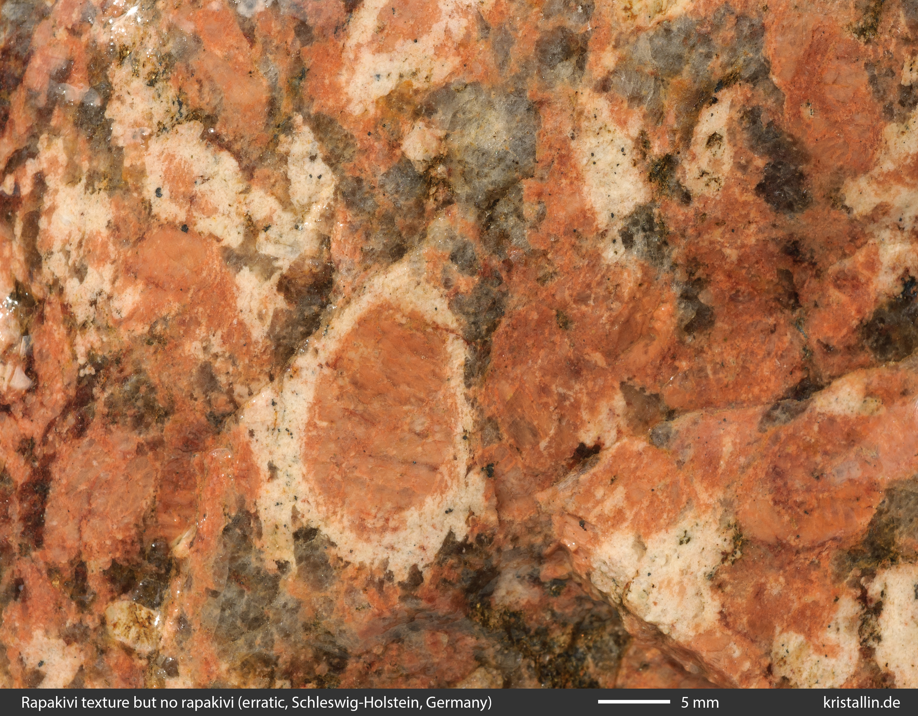 Despite the rimmed feldspars, the erratic at fig. 57 is also not a rapakivi, because it lacks the second generation of small quartz.
