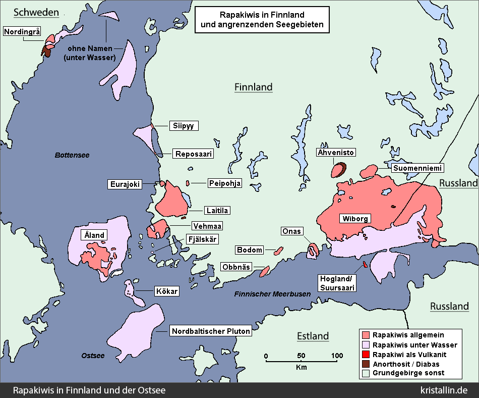Haapala, I. & Rämö, O.T. 1992. Tectonic setting and origin of the Proterozoic rapakivi granites of southeastern Fennoscandia. – Transactions of the Royal Society of Edinburgh. Earth Sciences 83: 165–171.