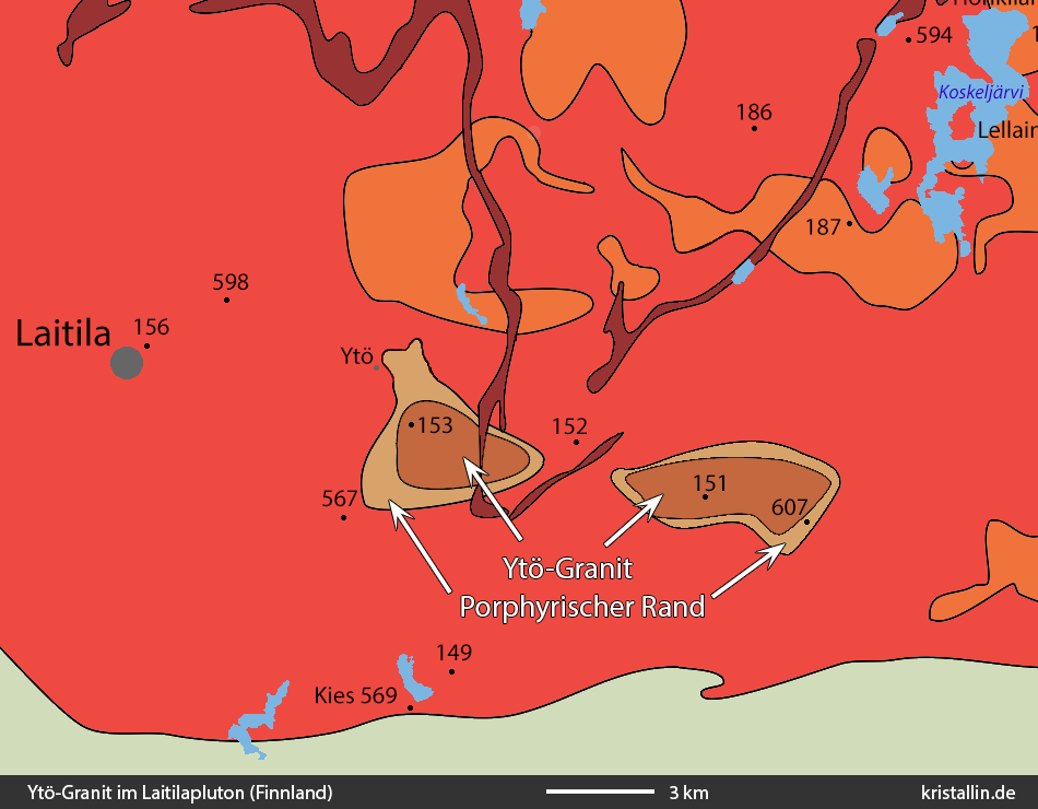 Einige lokale Varianten aus dem Laitila-Pluton haben ihren Weg in die Geschiebekunde gefunden. Zwei davon sollen näher betrachtet werden: „Lellainen-Granit“ und „Ytö-Granit“.
