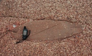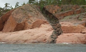 in das der Rapakiwi eingedrungen ist. Der eigentliche Kontakt zwischen