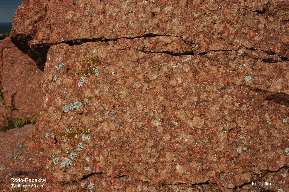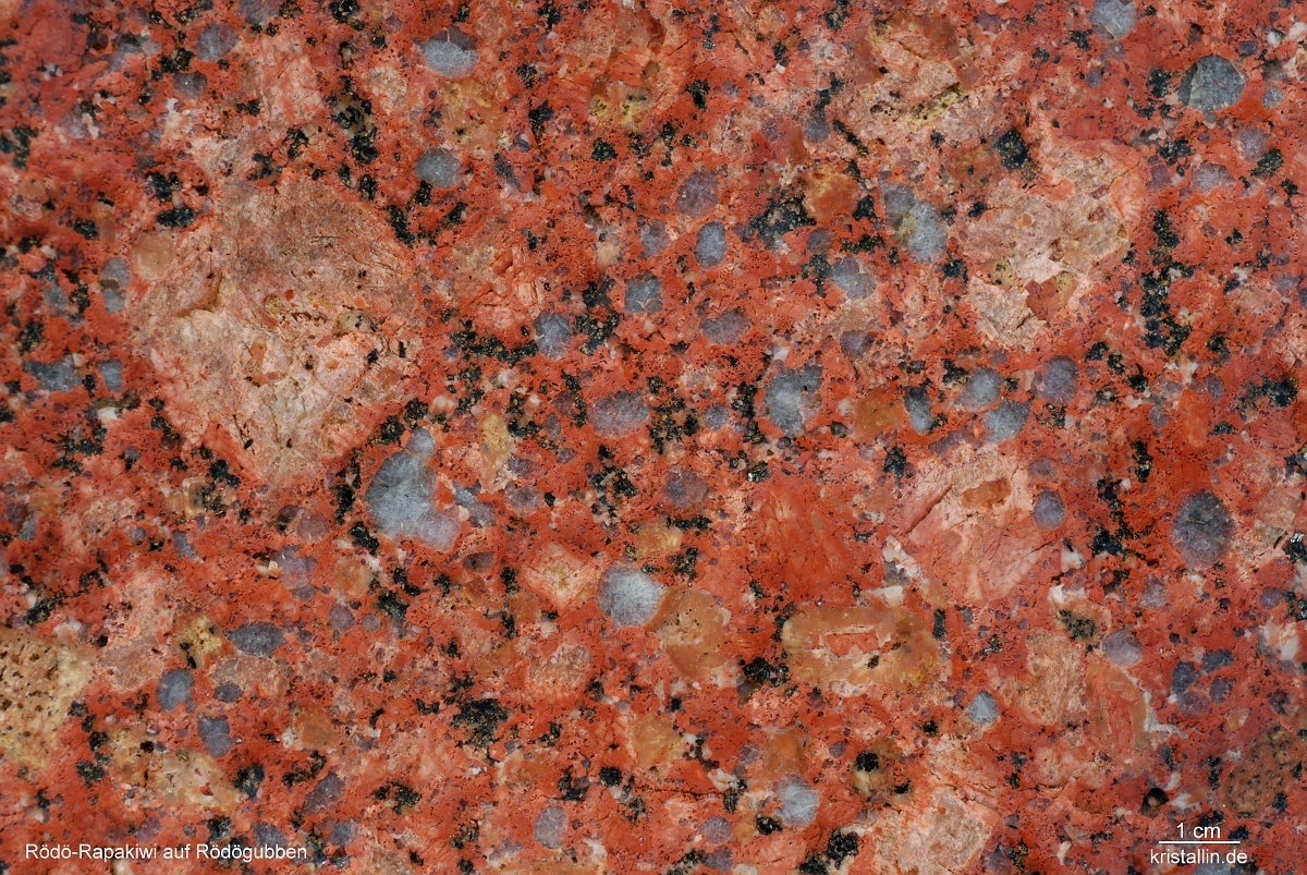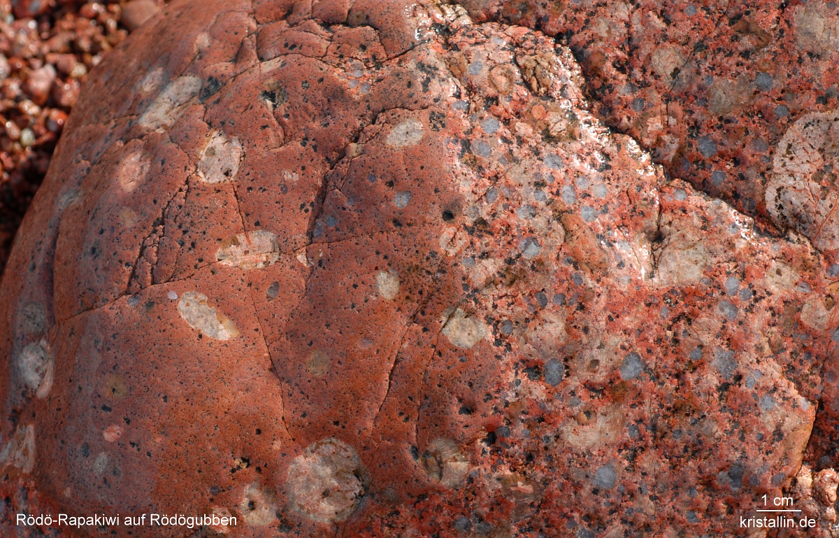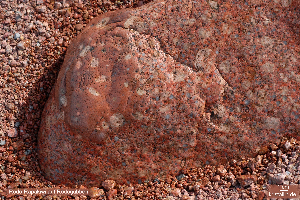 Unten: Ziegelrote Formen des Rödö-Rapakiwis, die nur sehr eingeschränkt als