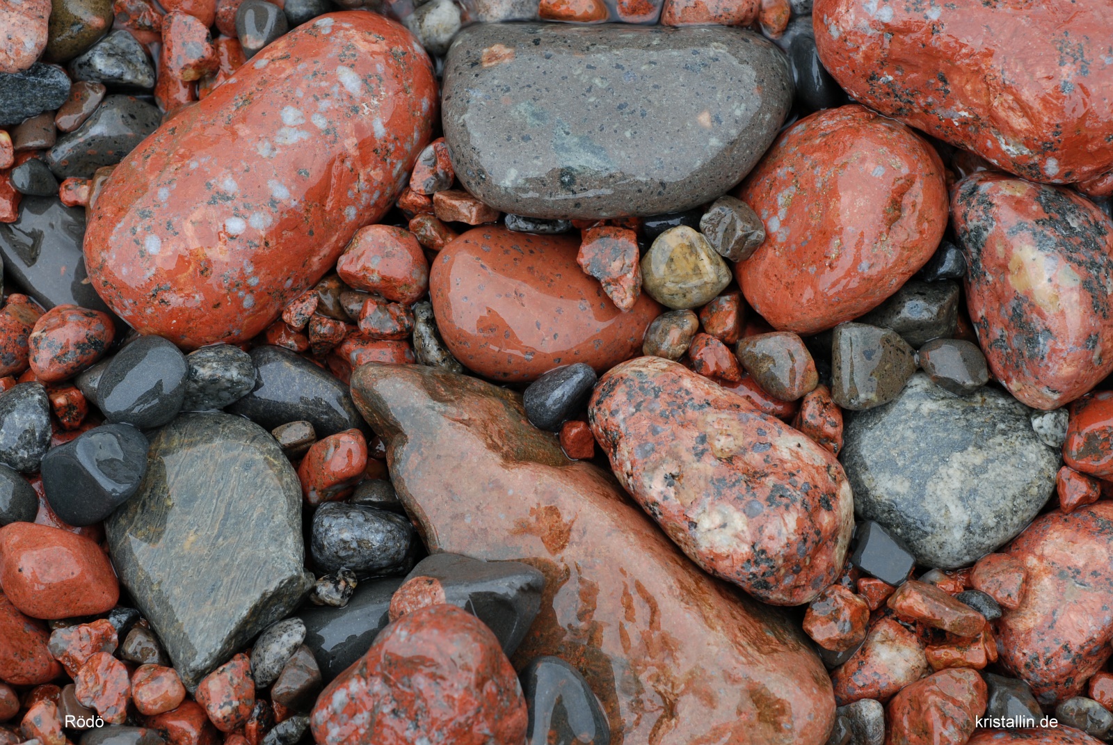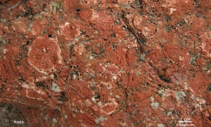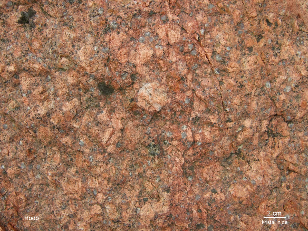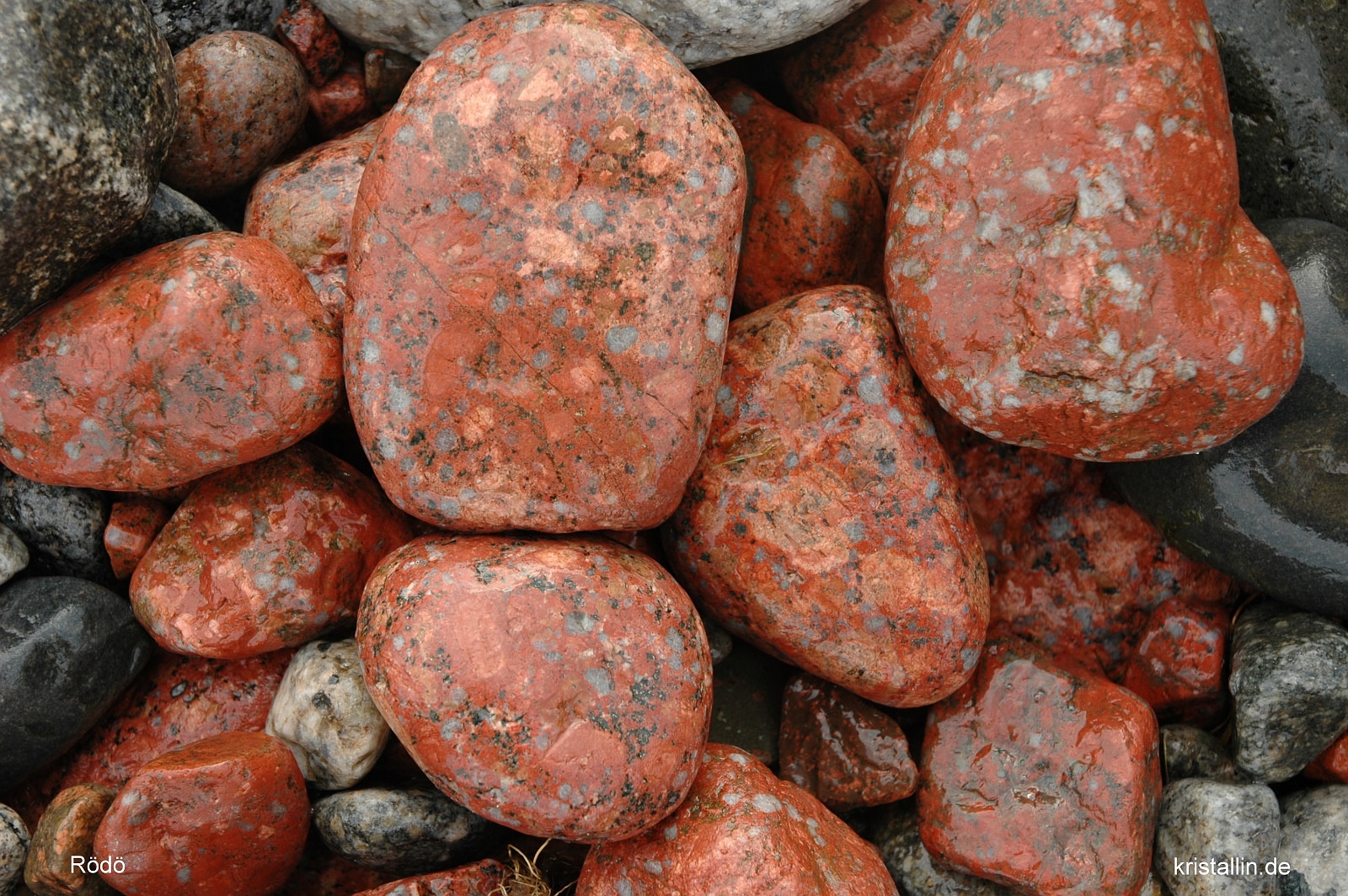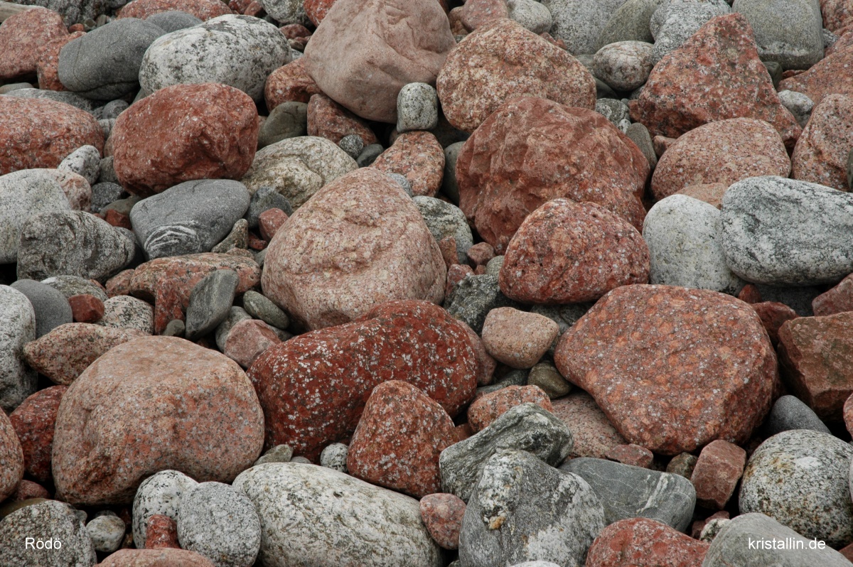 Unten: Ziegelrote Formen des Rödö-Rapakiwis, die nur sehr eingeschränkt als