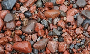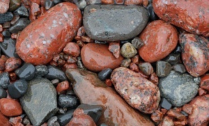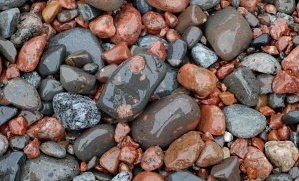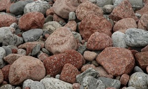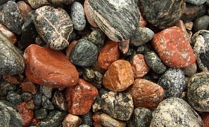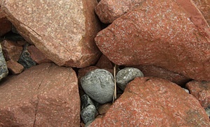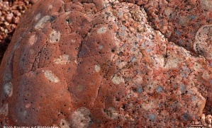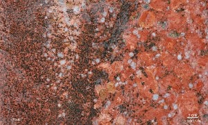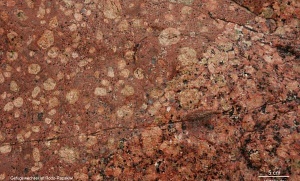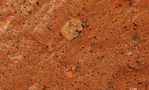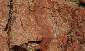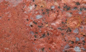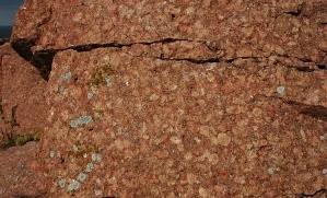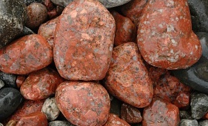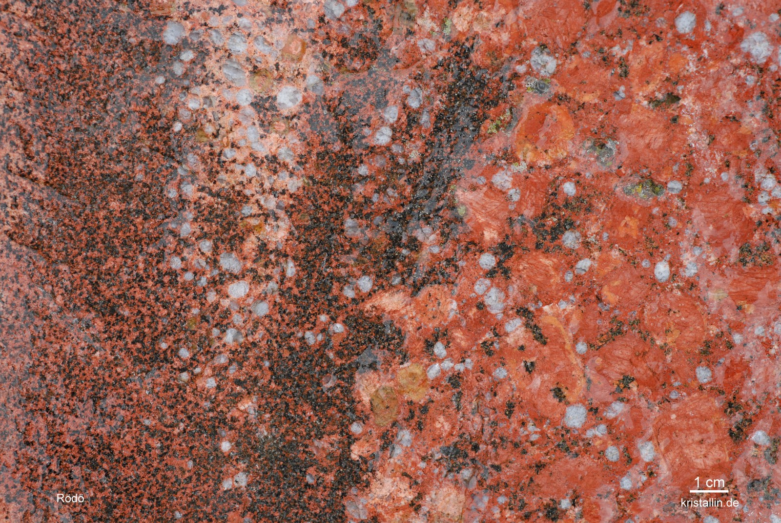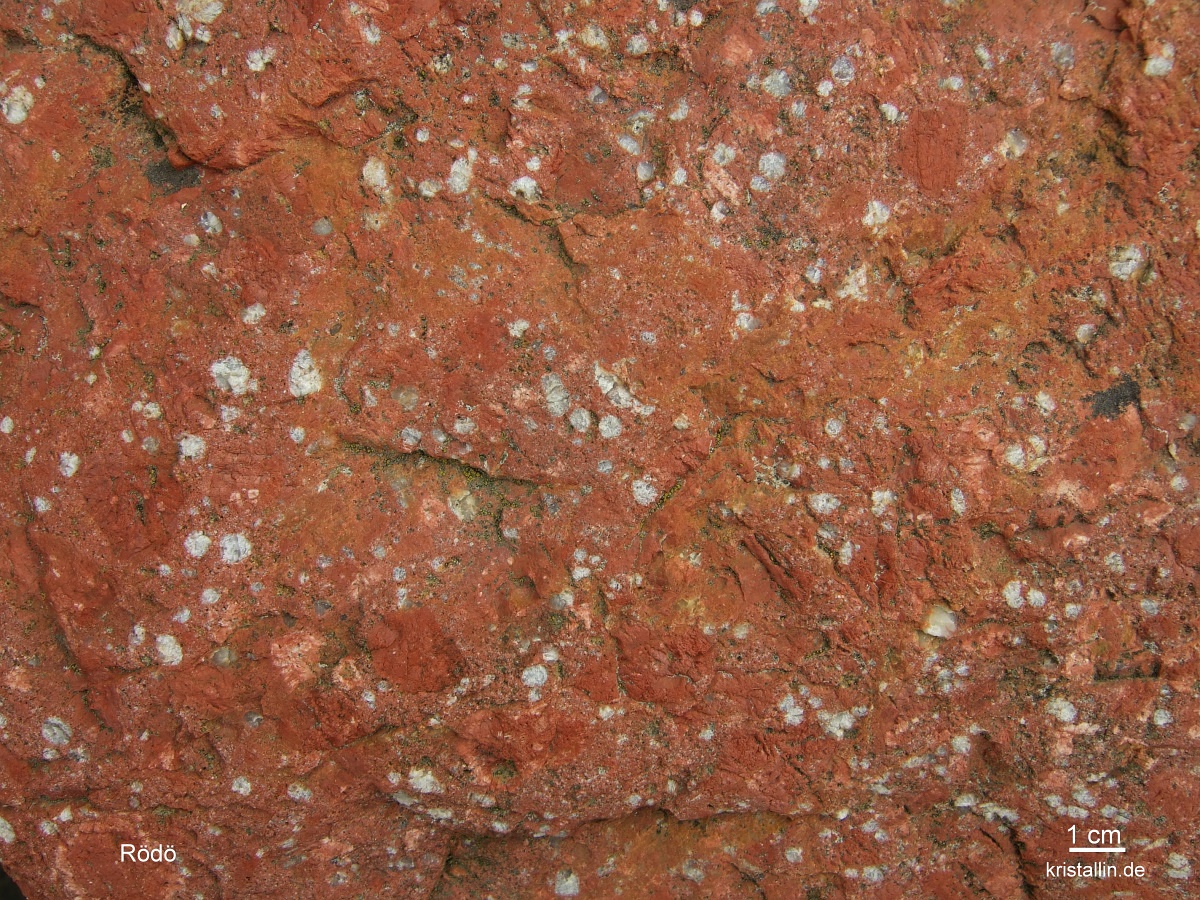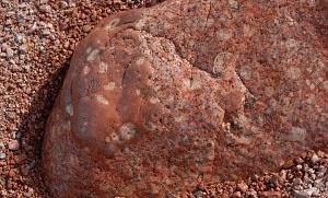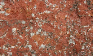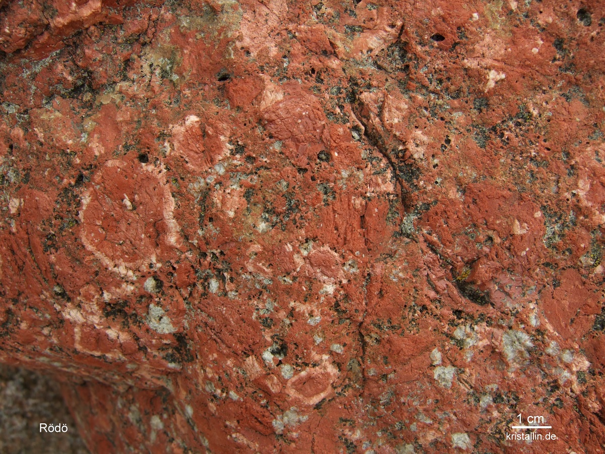 Unten: Ziegelrote Formen des Rödö-Rapakiwis, die nur sehr eingeschränkt als